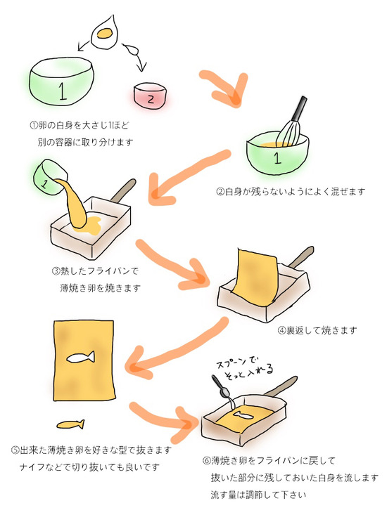 お魚の薄焼き卵の作り方を知りたいと