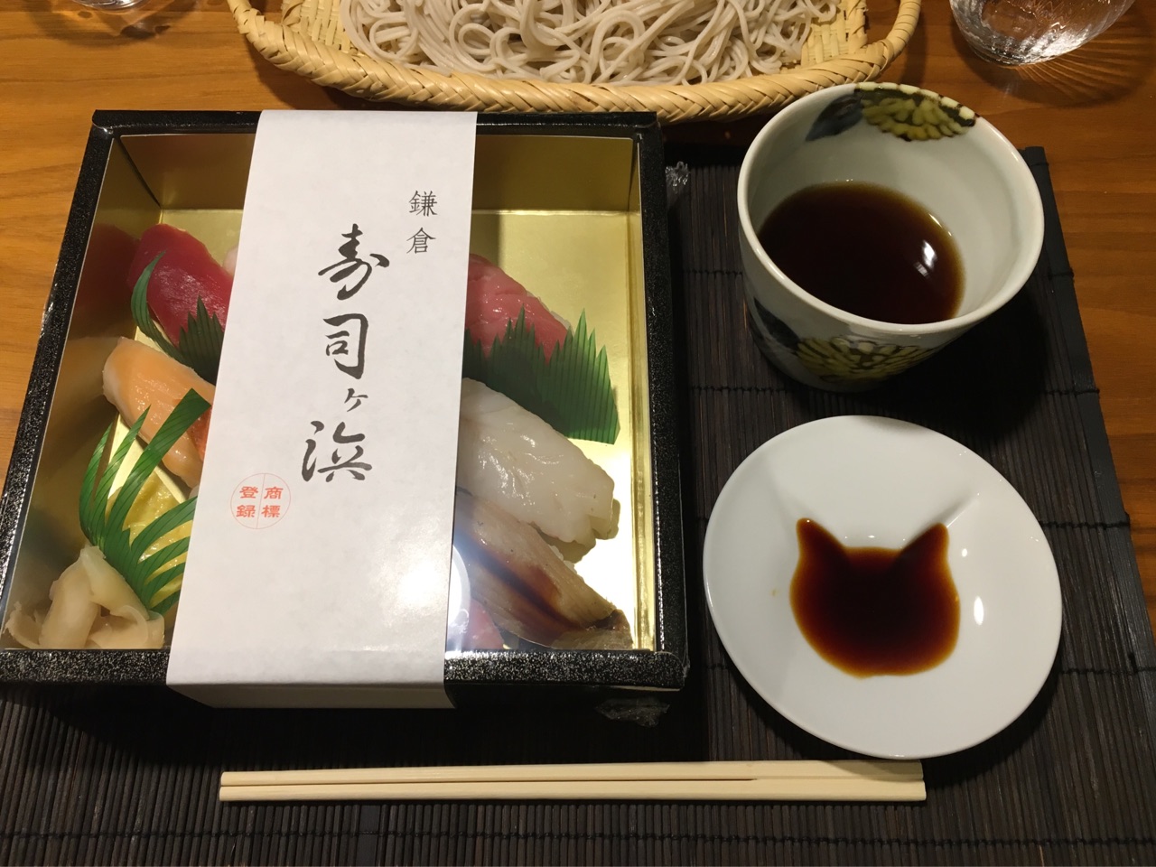 夜ご飯は、お蕎麦を茹でて、お寿司の出前とともにいただきました✨
