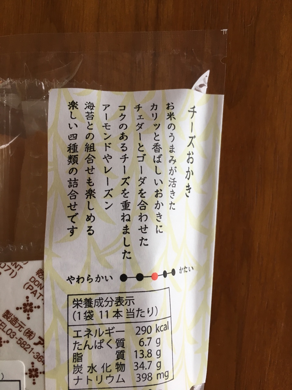 チーズおかき、1つ食べるともう1つ食べたくなる。