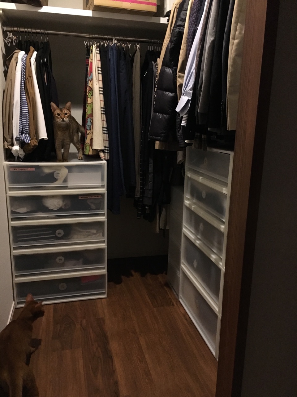 衣装ケースの上のちびたん♡ワクワクしてますのにゃ(*^▽^)/★*☆♪