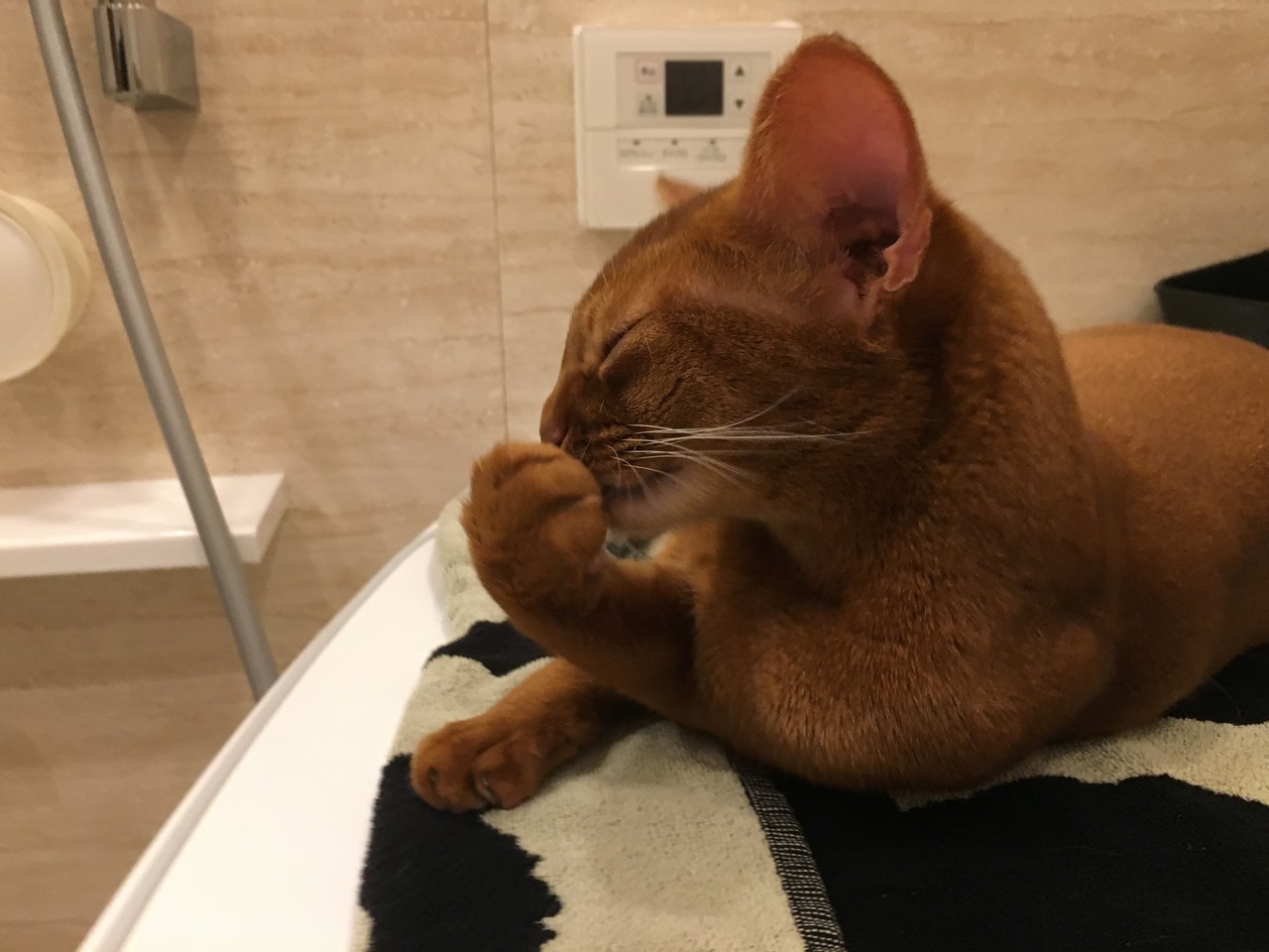 ひめちゃん蒸気で毛繕いで、より艶やか♪