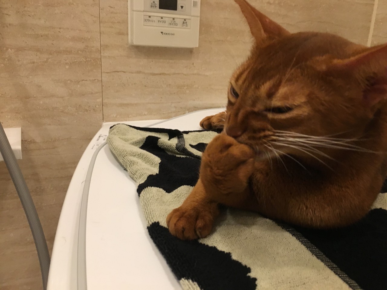 最近、ひめちゃんがお風呂のフタで過ごすことが多くなりました。