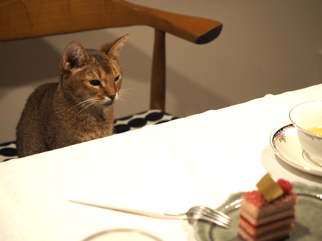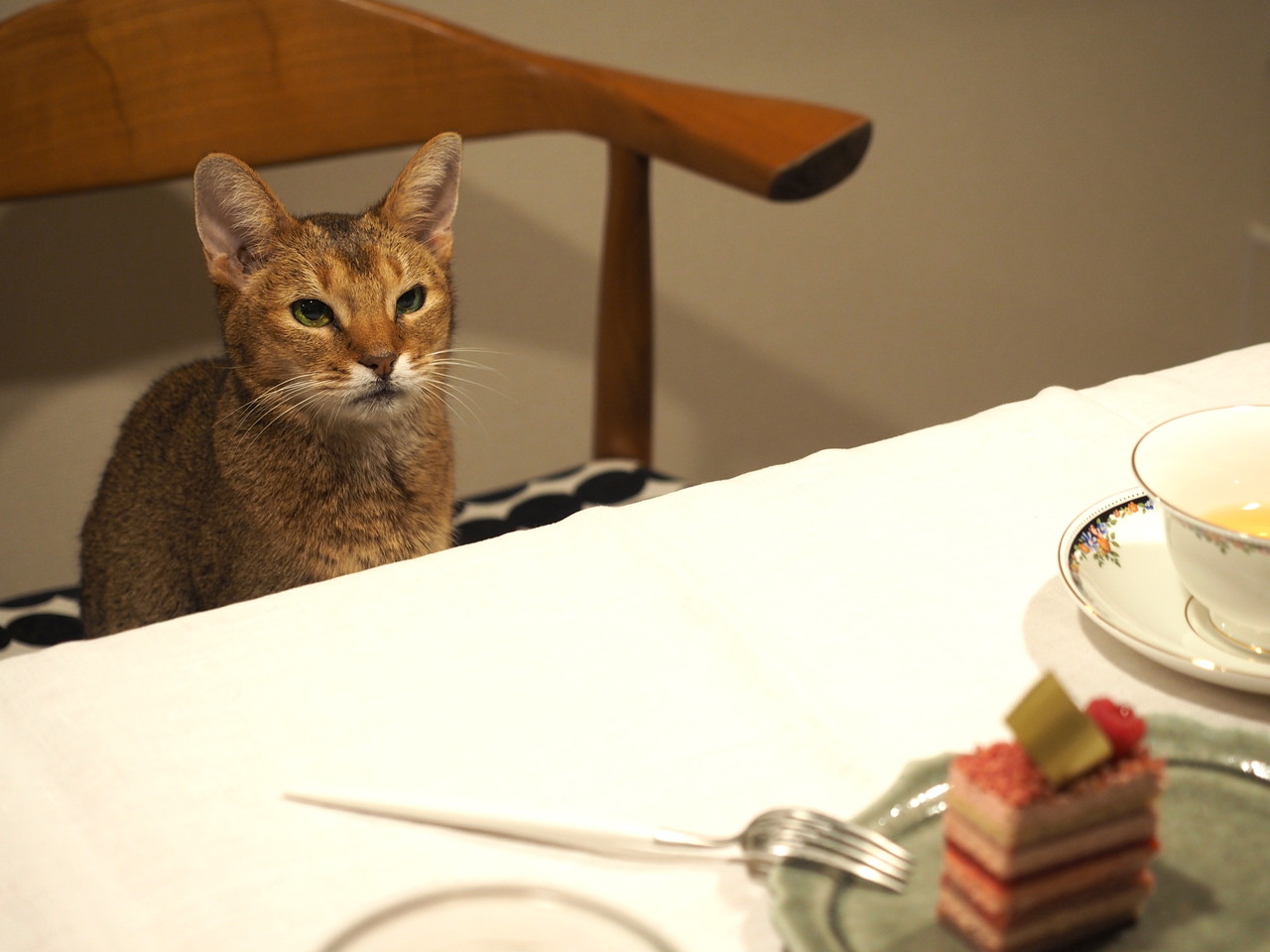 立膝でテーブルについて、優雅にお紅茶を飲んでいた