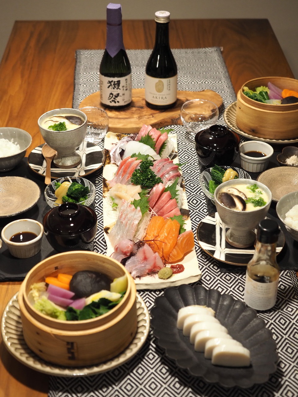 お酒は、頂き物「獺祭」と、りょこさんに買ってもらった「AKIRA」