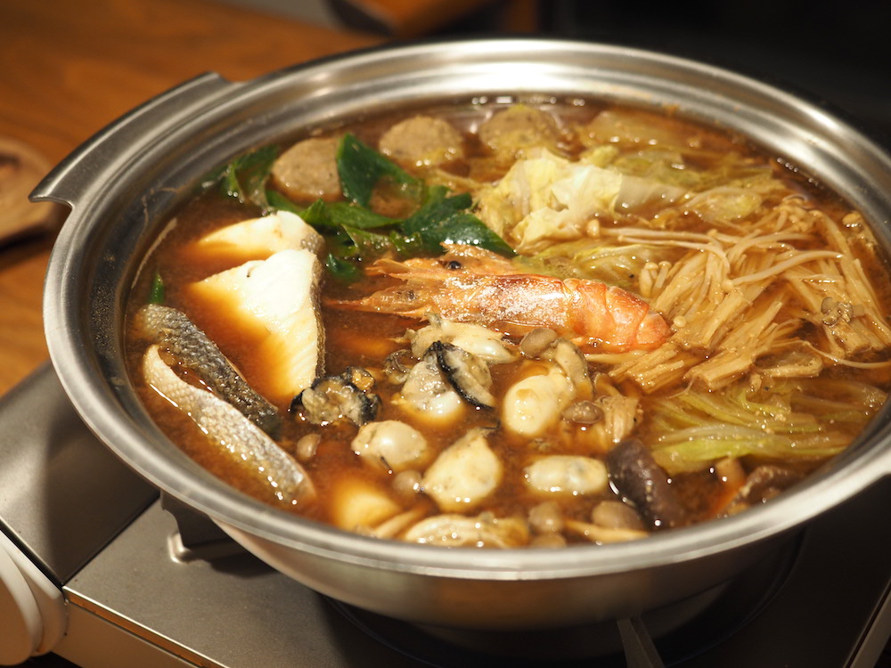 海鮮みそ鍋をつついている側で、