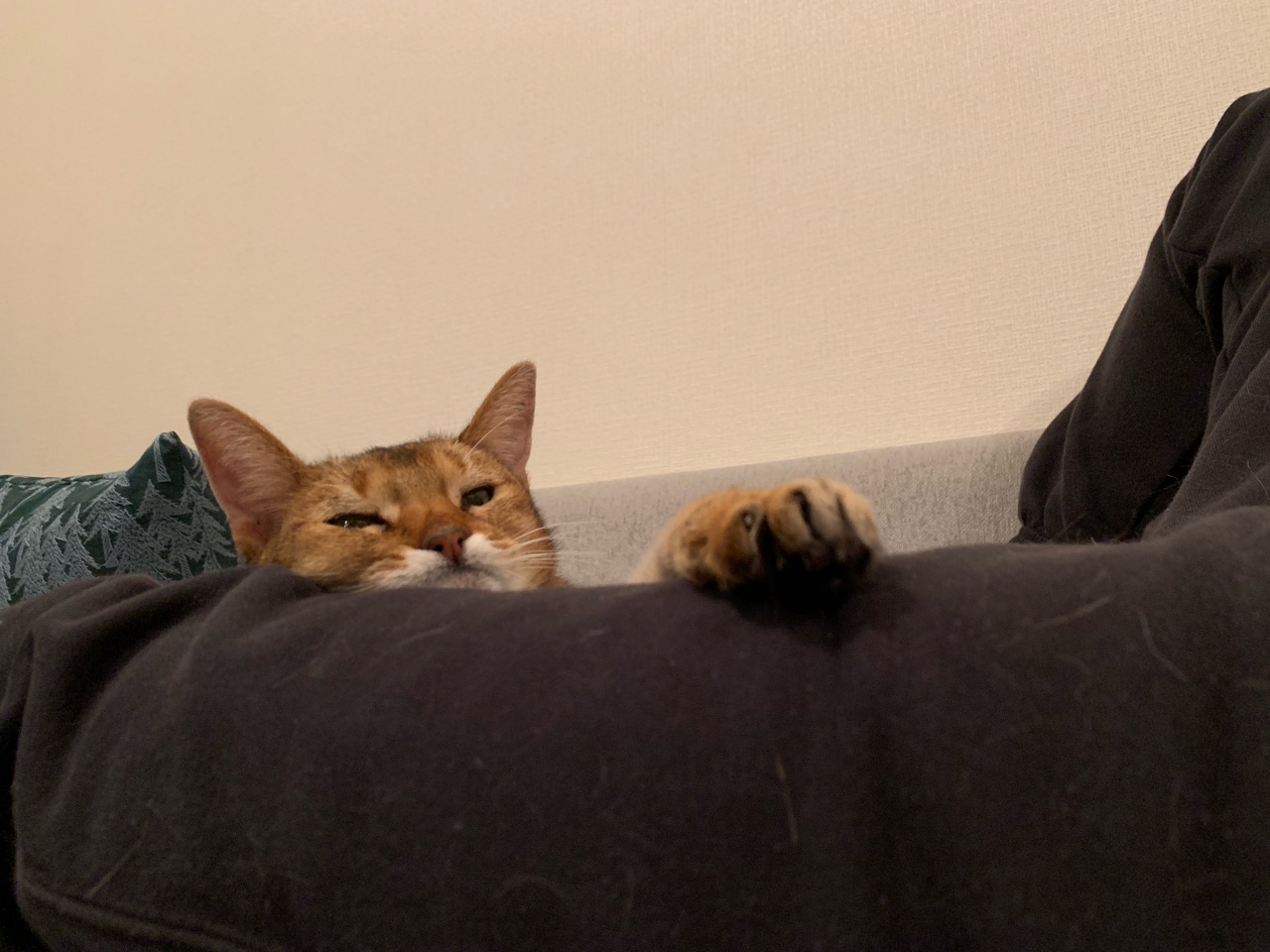 のっそりと、膝の上に乗っかってきます。
