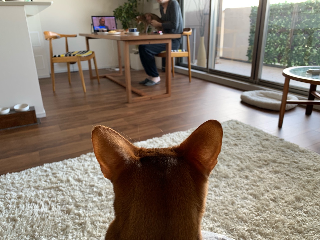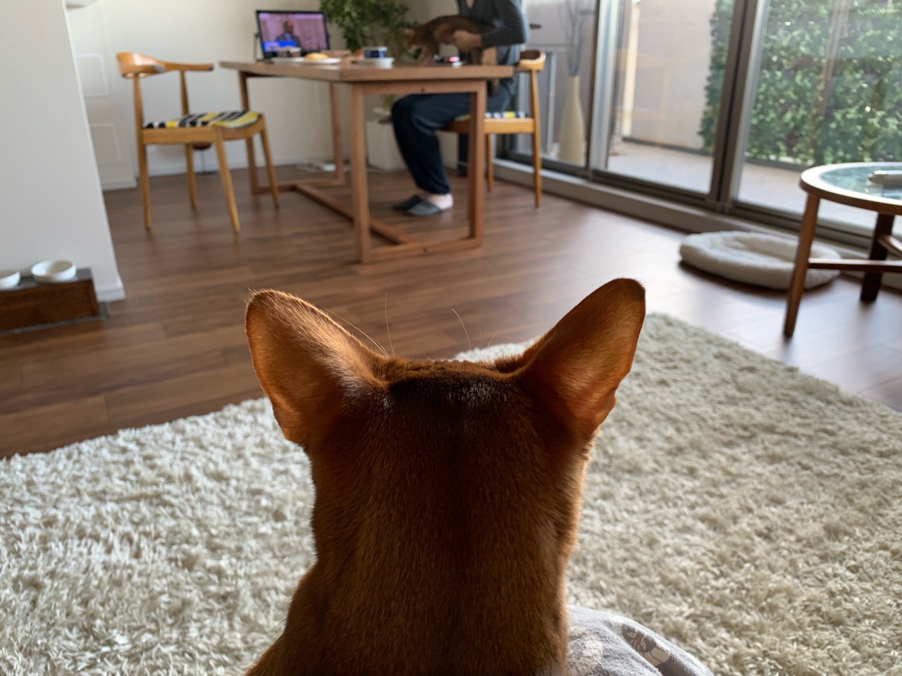 飼い主が椅子やソファーに座ると、