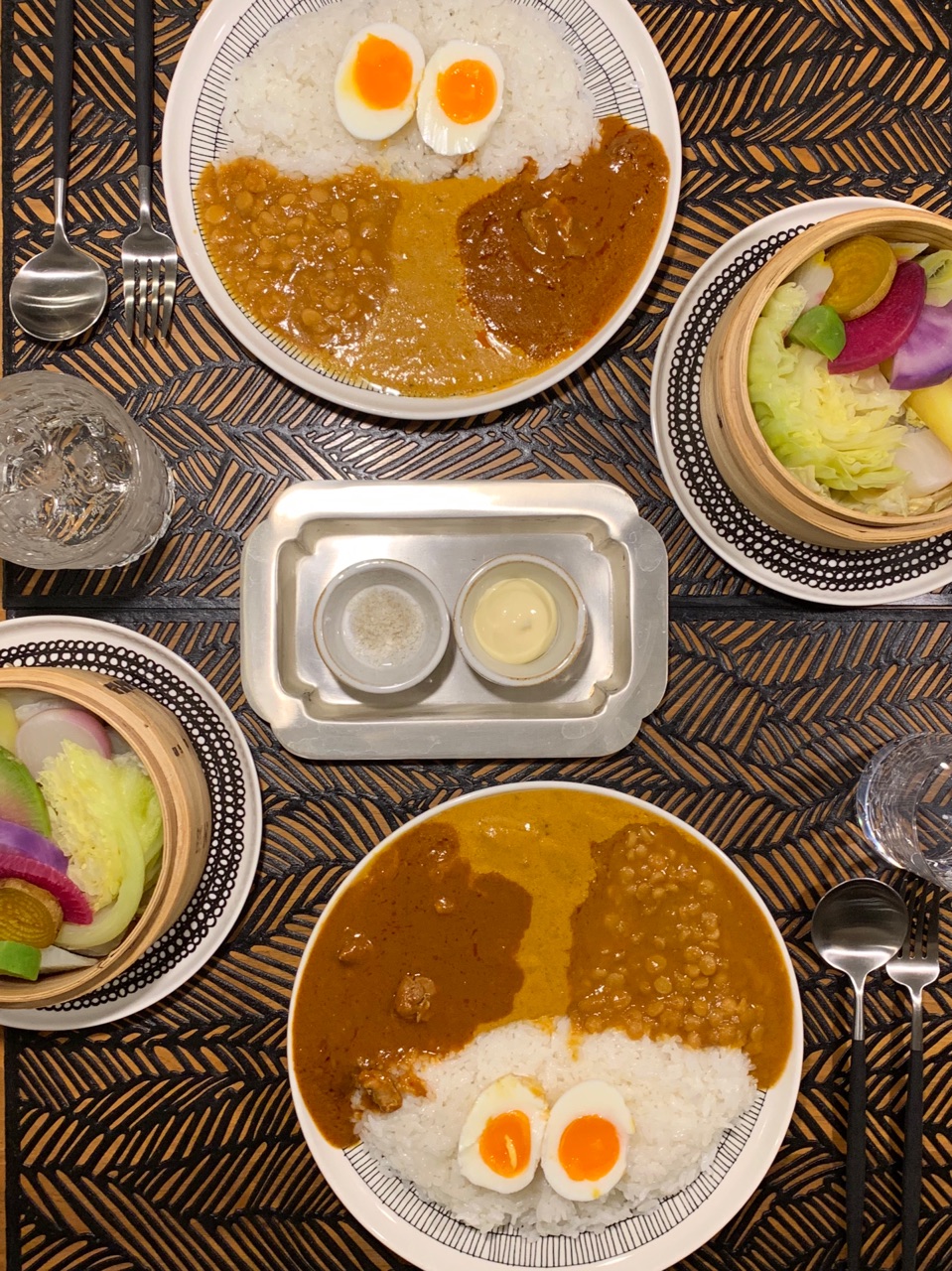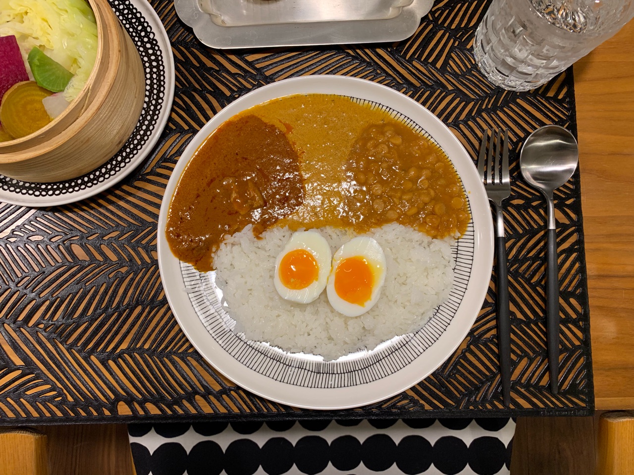 カレーを温めているお鍋で、ゆで卵まで作るという抜かりなさ!