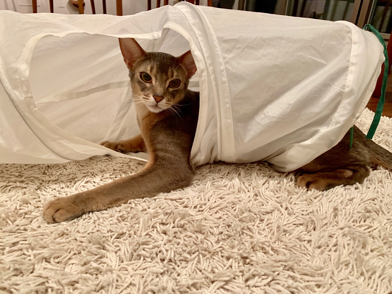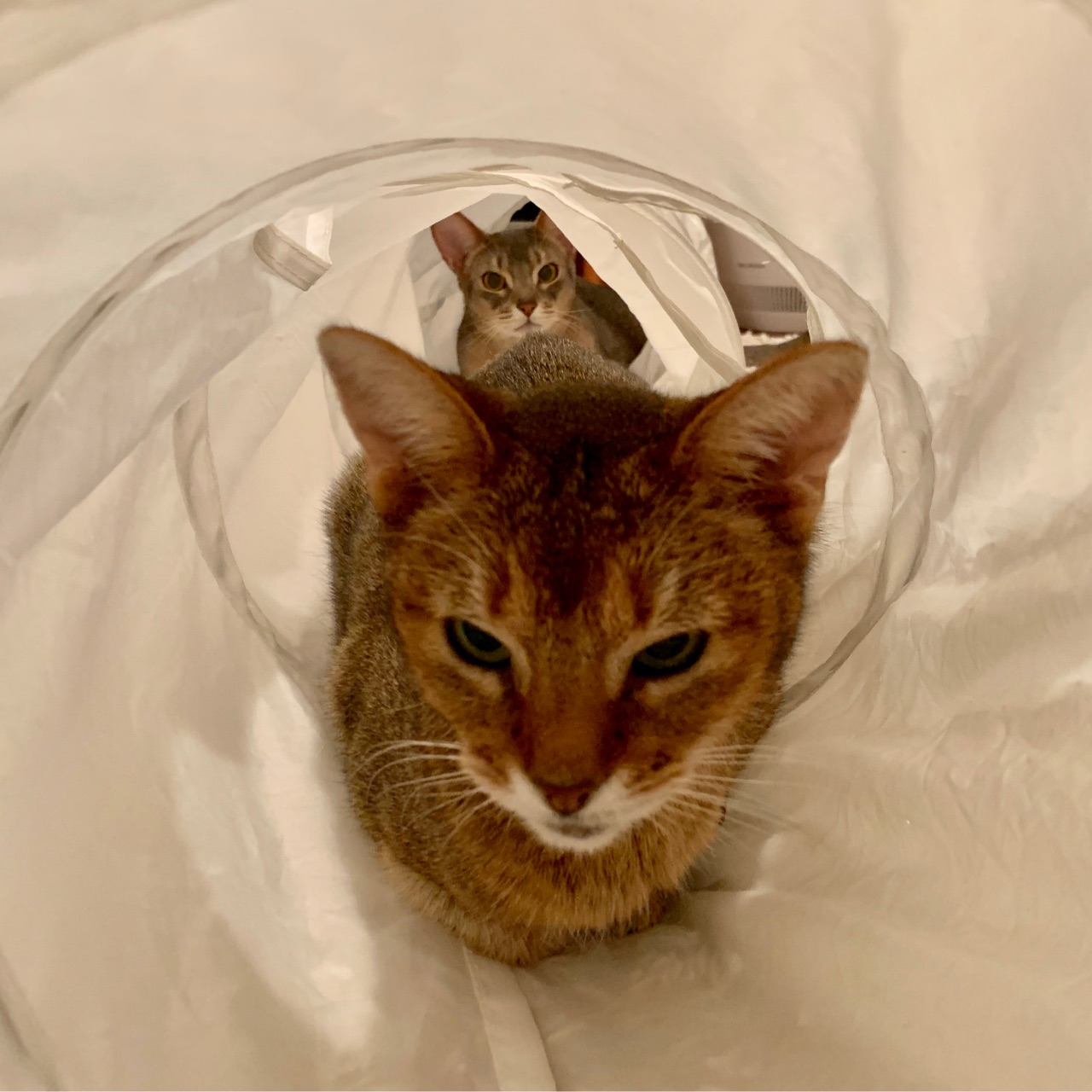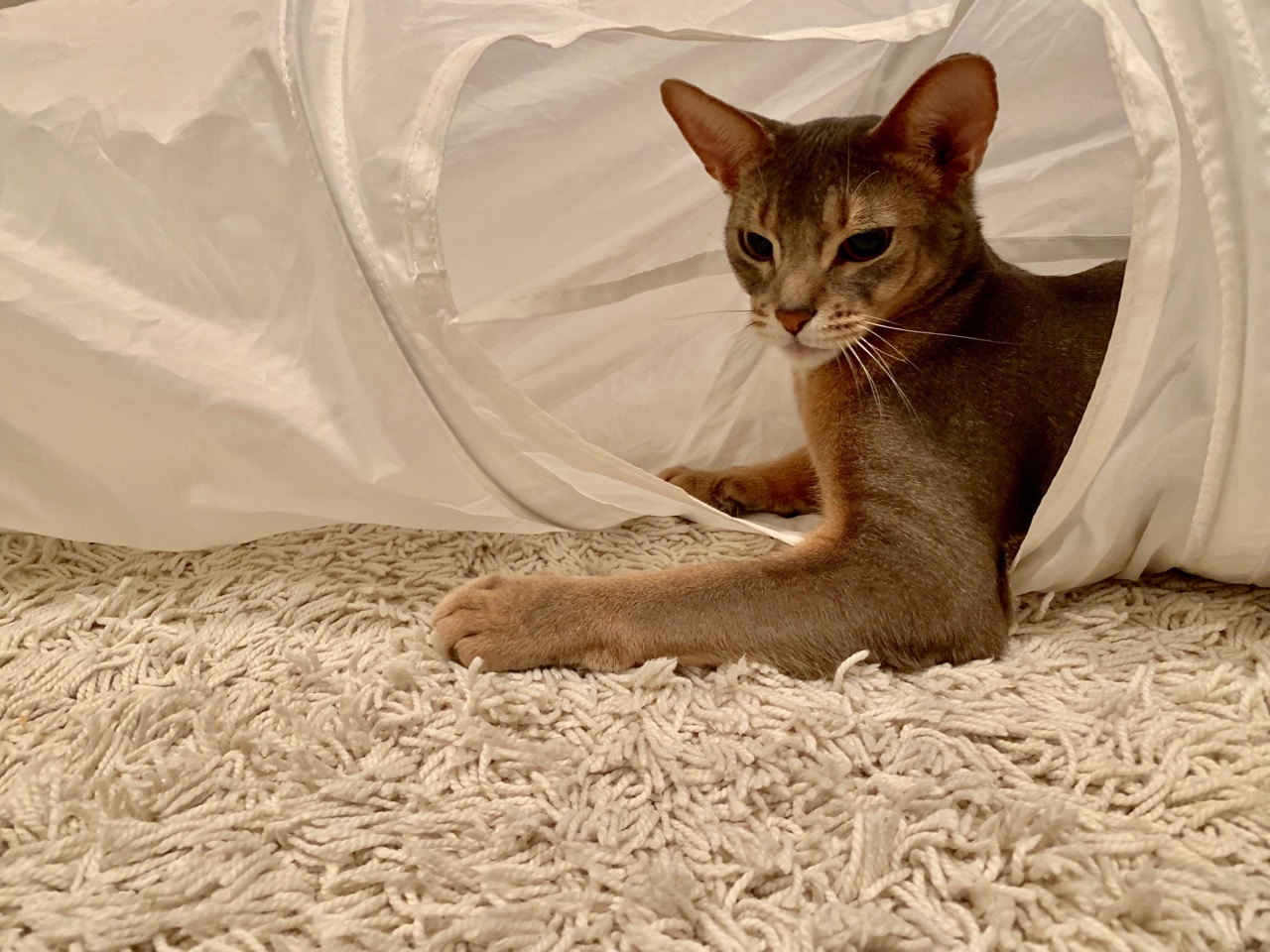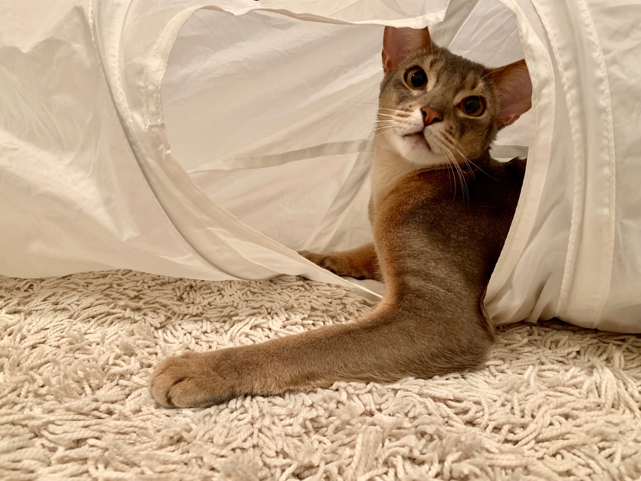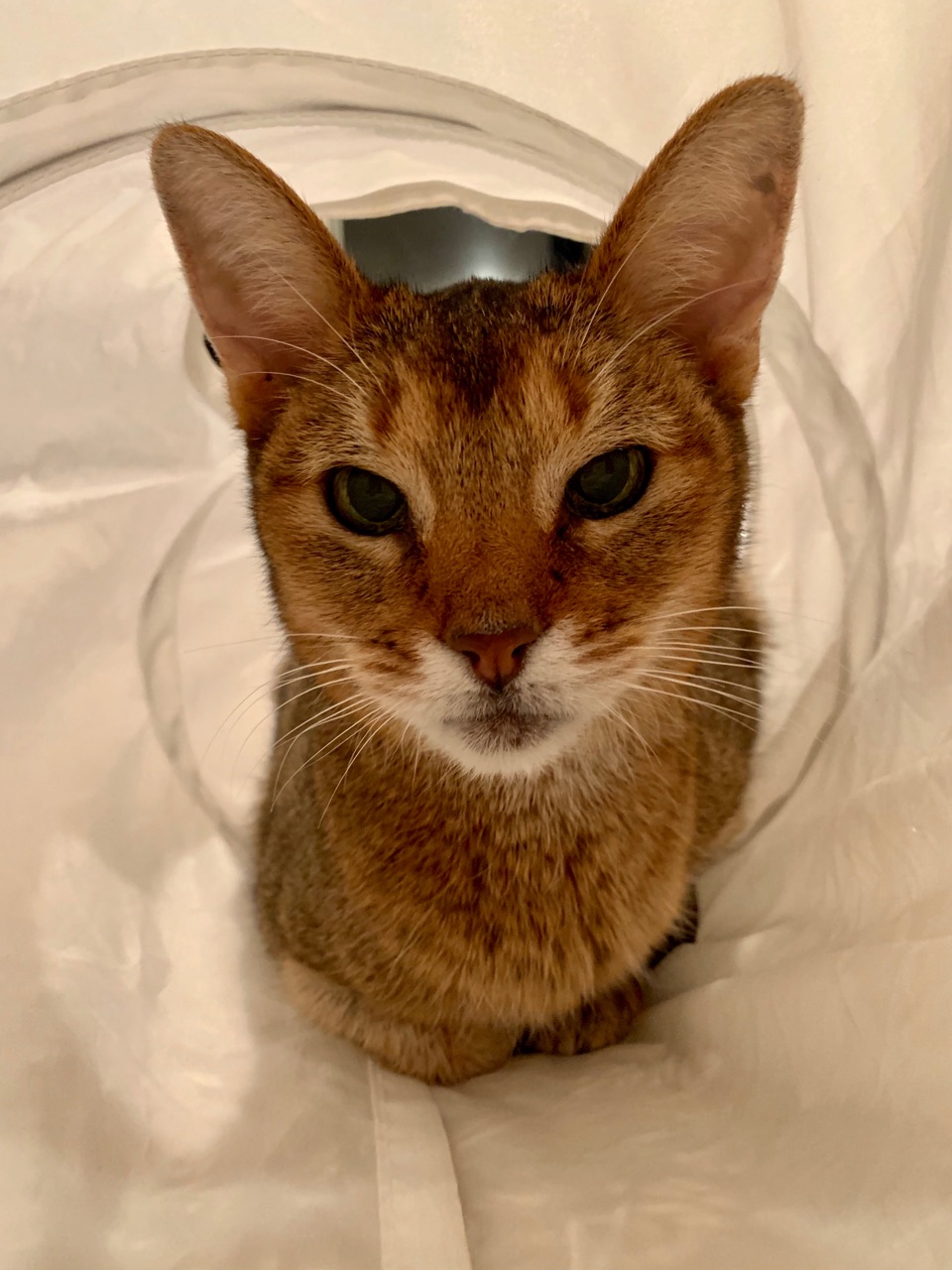 我が家にはベンガルの男の子がいるのですが、このブログを読んでから「アビシニアンて可愛いなぁ!うちのベンガルと一緒に遊んでくれたら!」と、2匹目はアビシニアンと決めてブリーダーさんを探してました。たまたま、我が家の近くにいらしたブリーダーさんの所へ見学に伺って、「なんとなくとの君ひめちゃんに似た子がいるなぁ、っていうか皆んな可愛すぎる!」と、11月出産予定の子を予約させていただいて、今月ついにお迎えしたのですが…
