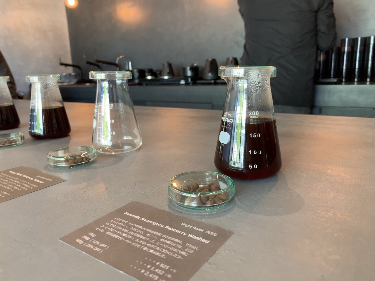 カウンターにはテイスティング用のコーヒーがあって、全て試飲することができます。