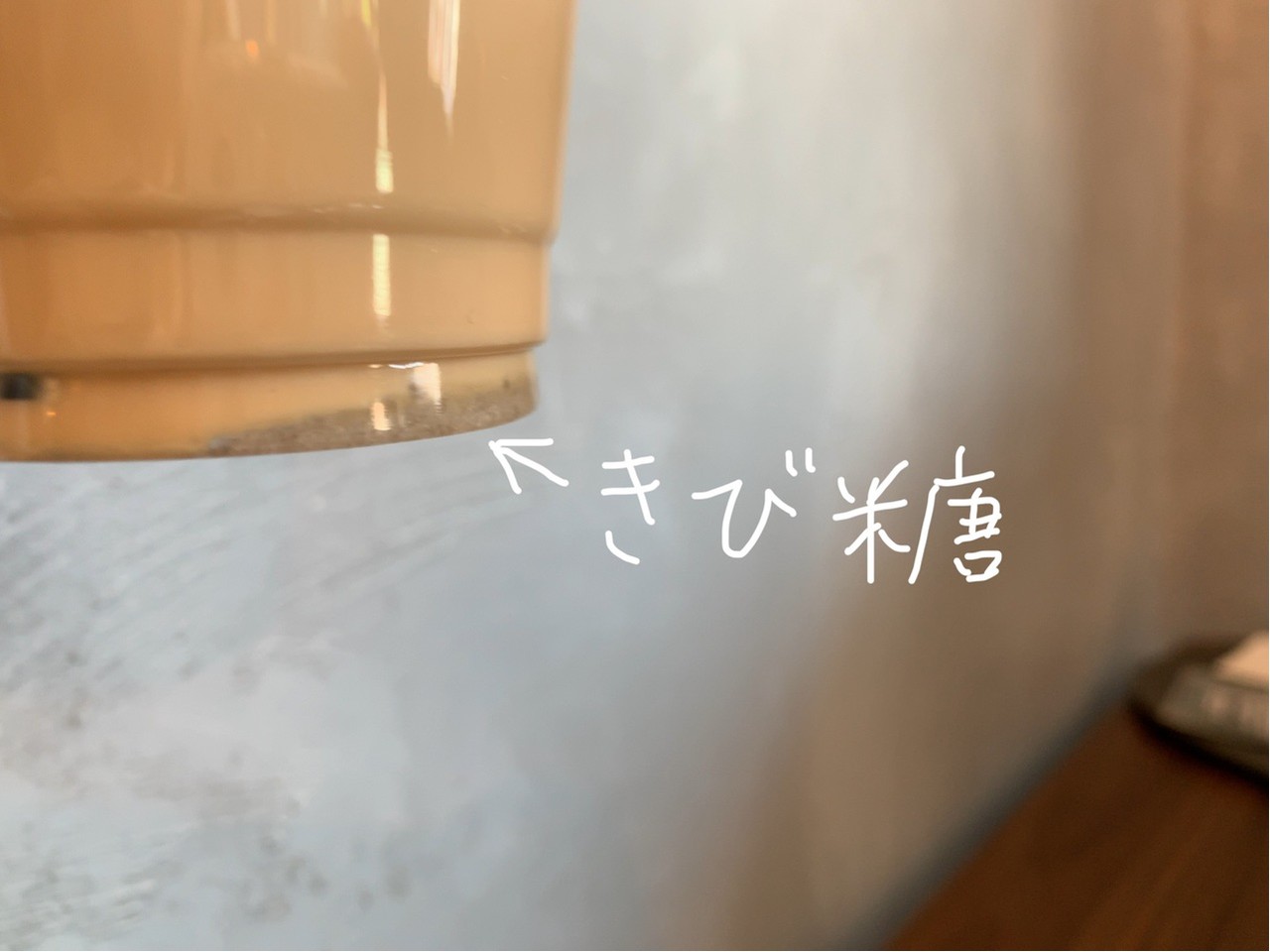 コーヒー牛乳の底に、きび糖が沈んでいて