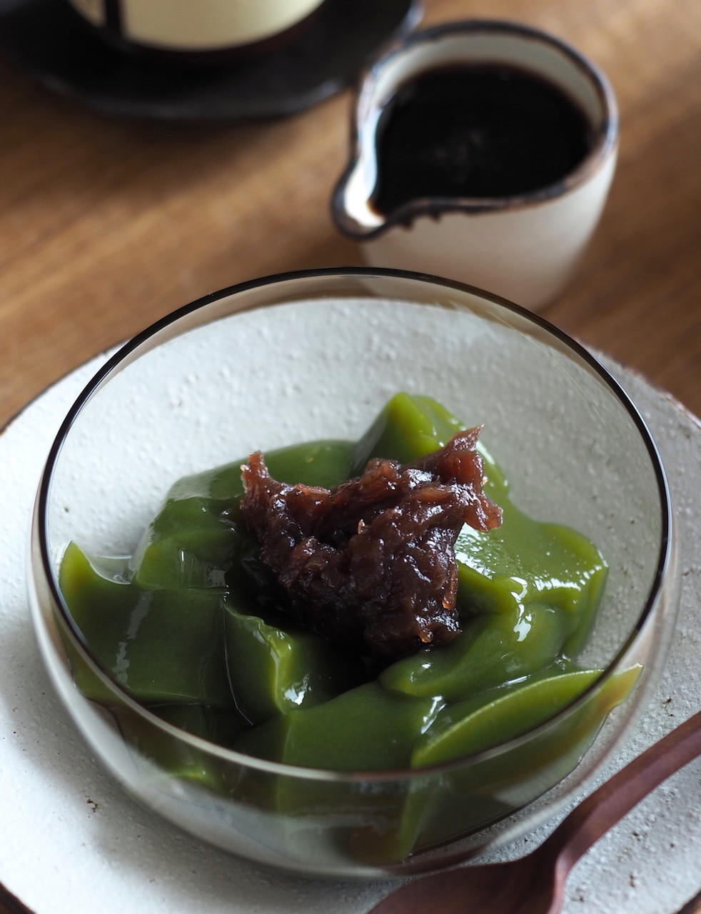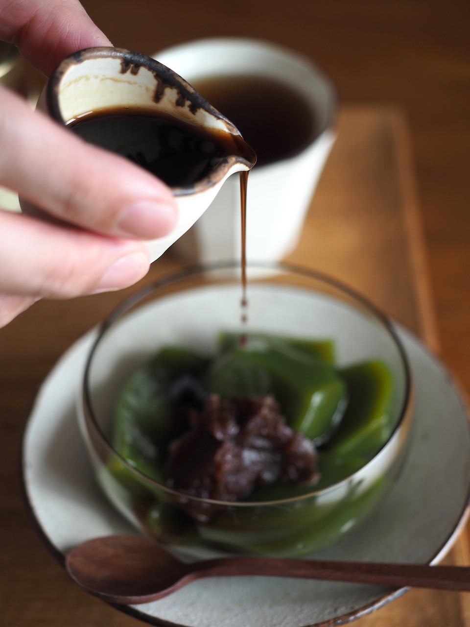 抹茶ゼリーとあんこと黒蜜、ベストマッチですね