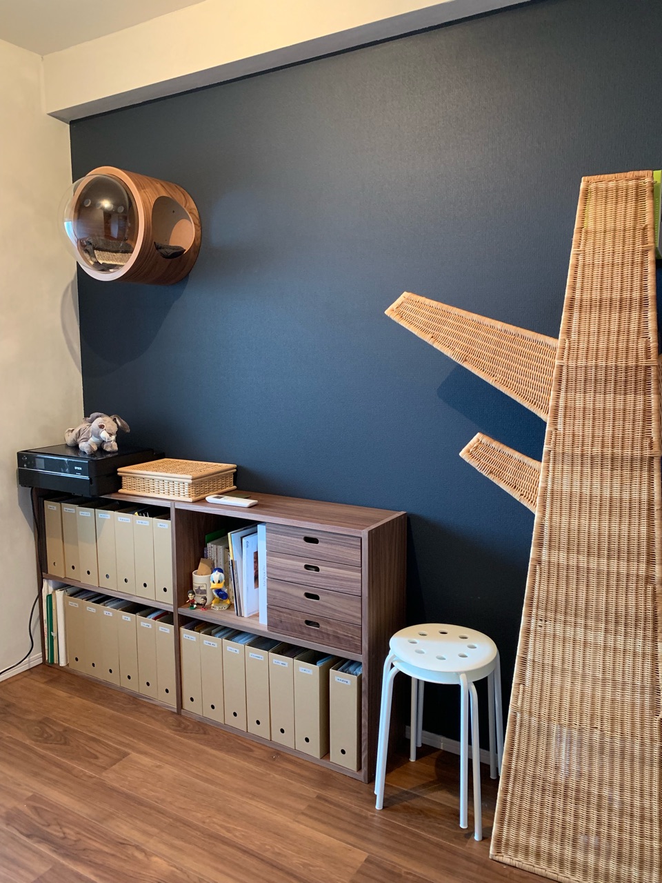 書斎部屋、おっ!宇宙船猫ハウスが壁に!?