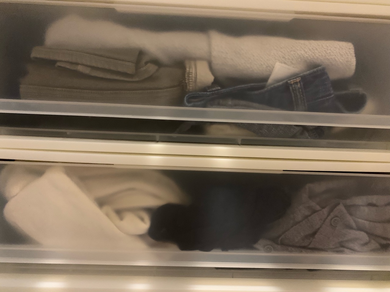 ここには、下着や靴下、Tシャツなどを種類ごとに入れてるのですが、どの引き出しも溢れかえったり分類がデタラメになってました(⑉་ ⍸ ་⑉)