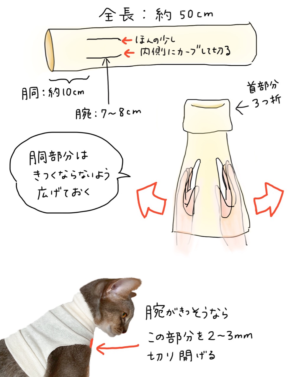 (首部分は、先に三つ折りにしてからかぶせるほうが着せやすいです)