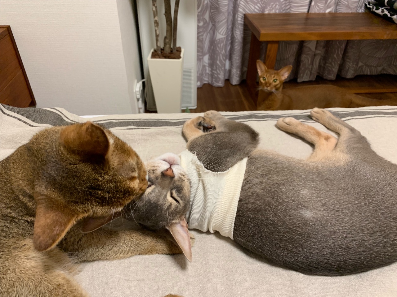ちび子に甘えて頭を擦り付けるのも、いつも通り♪