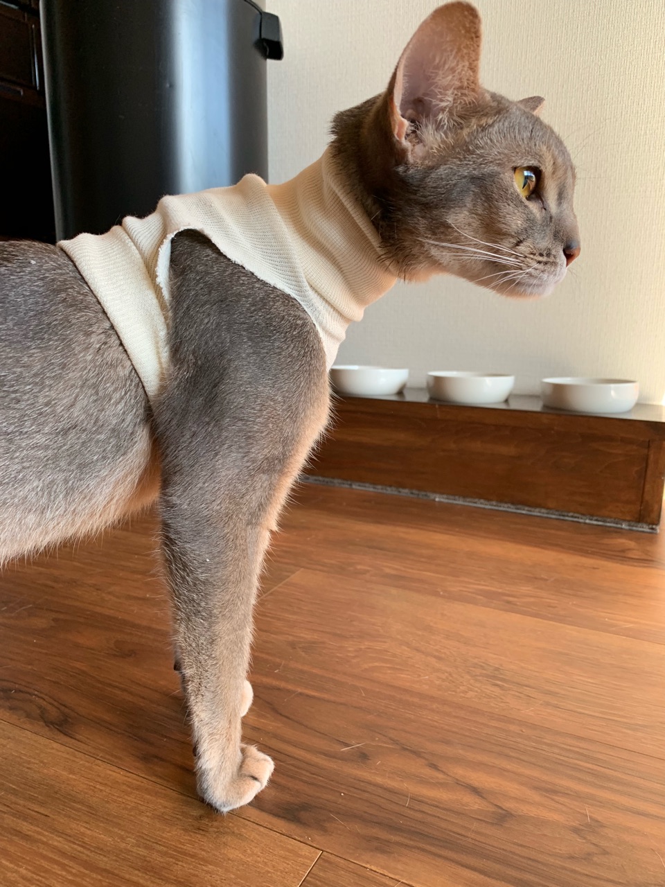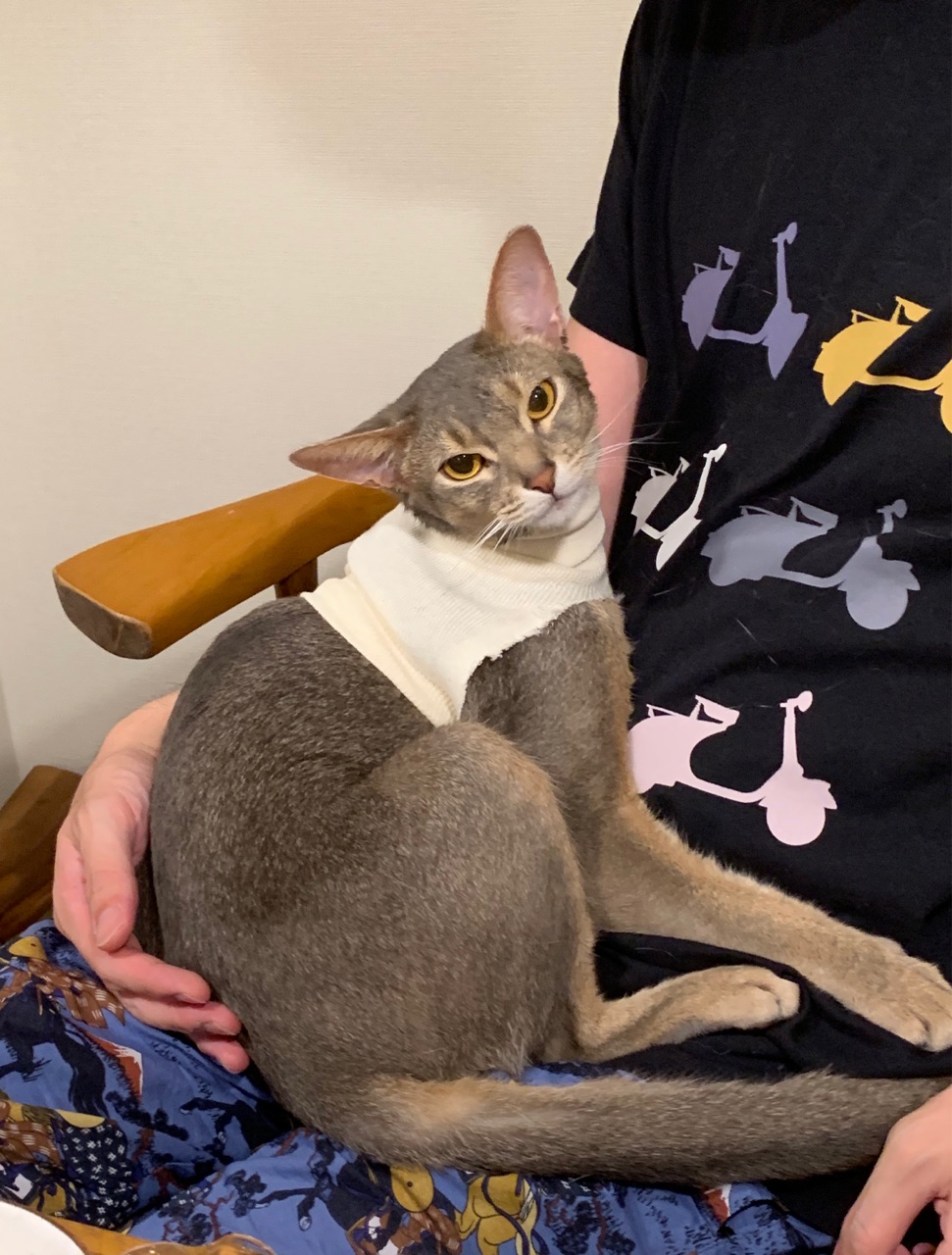 カラーよりこちらの方が快適そうですね^_^ 全然嫌がらずに着用してますね、凄い^ ^ ひなちゃんが着てたふなっしーのひなっしーも凄く可愛かったです