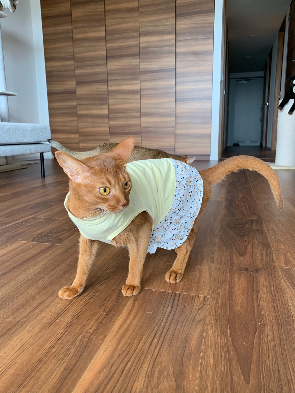 とのが、首の炎症でお洋服生活をしていることもあり、