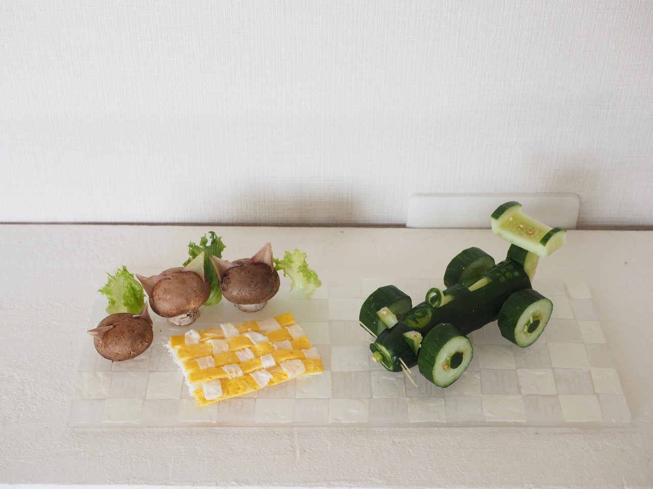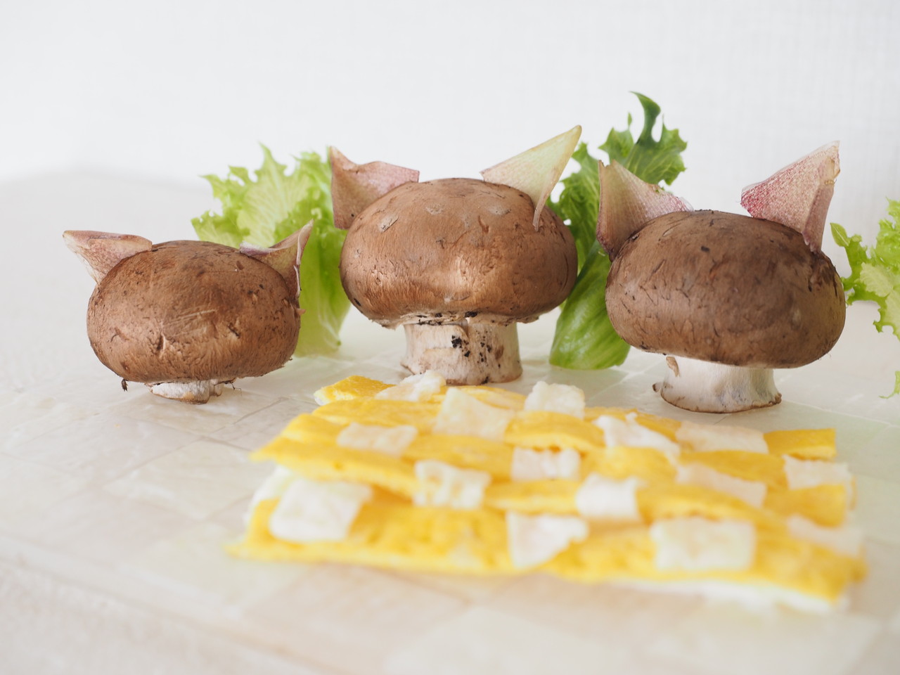 お迎え隊は、マッシュルームにミョウガの先を切って耳に見立てて刺しました。