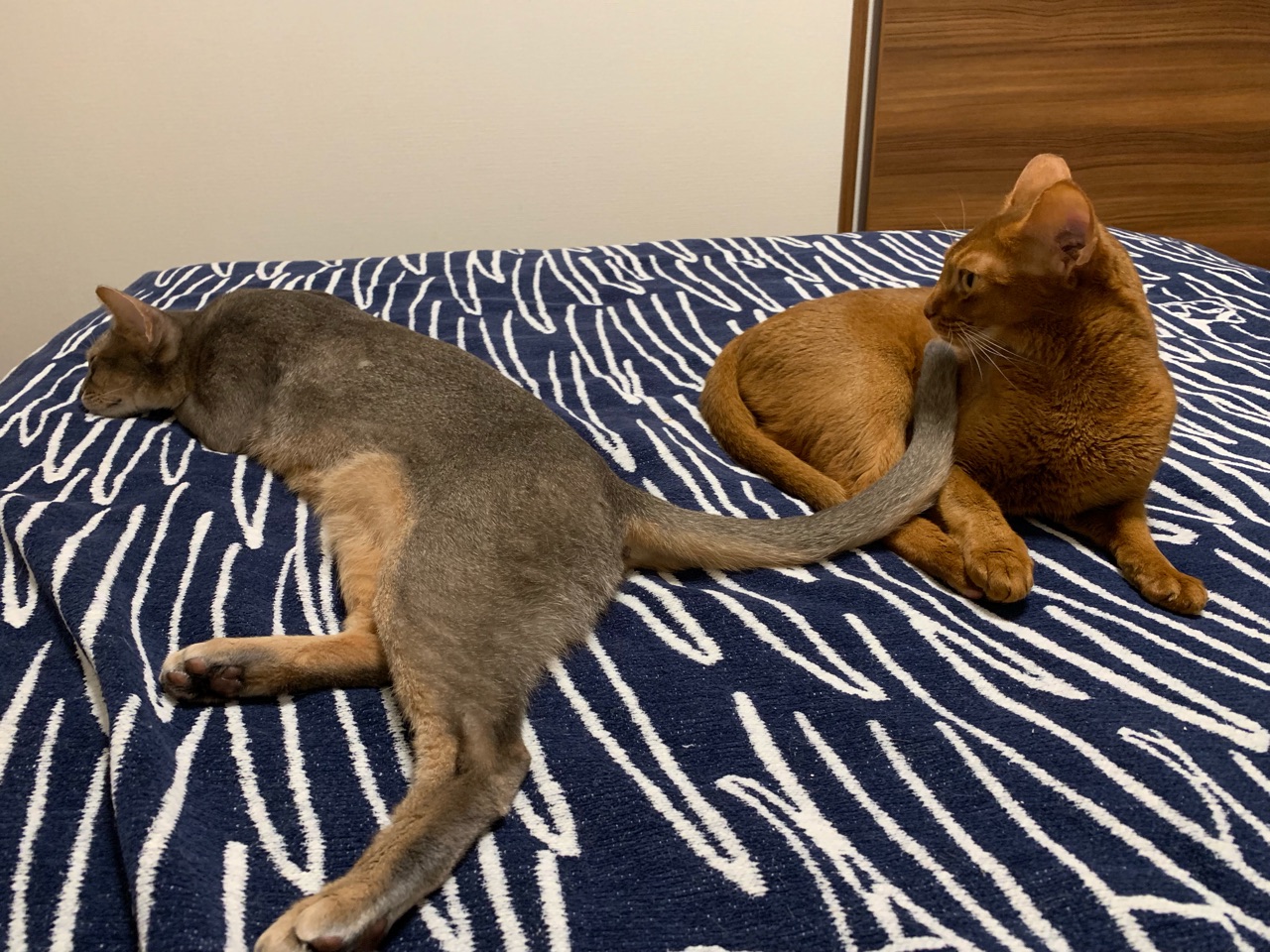 アビシニアンの出身地って、エチオピアかイギリスなんですね。なんとなくー、たまひなちびちゃんがイギリスで、とのひめちゃんがエチオピアって感じがしました(すごい勝手なイメージ😅)。日本に来てくれてありがとー🎵
