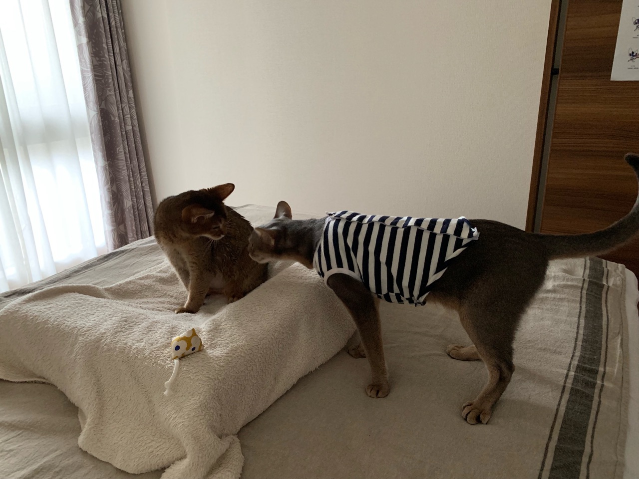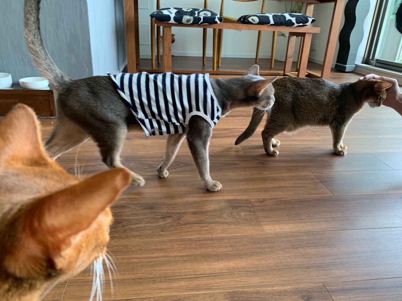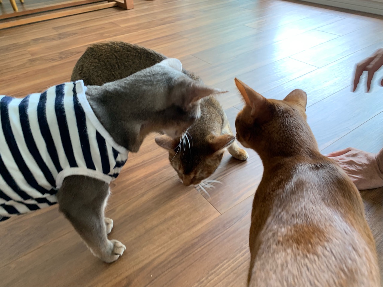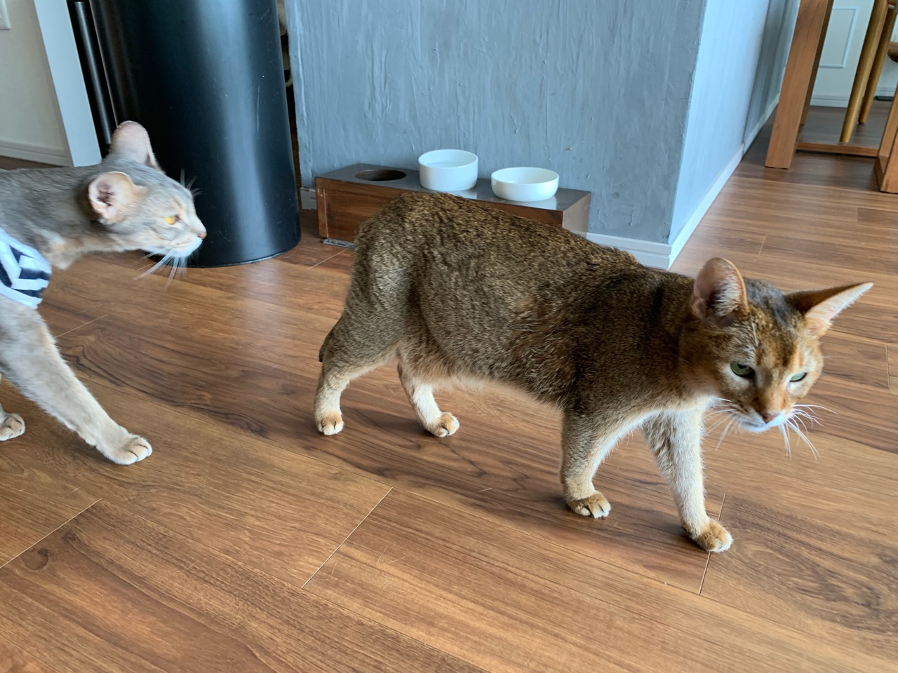 またナイフなちび子ちゃんを見られてちょっと安心しました。ちび子ちゃんには迷惑な状況なのでしょうが😅。ひめちゃん、隠れてたけどシャー⚡にあったのね😁