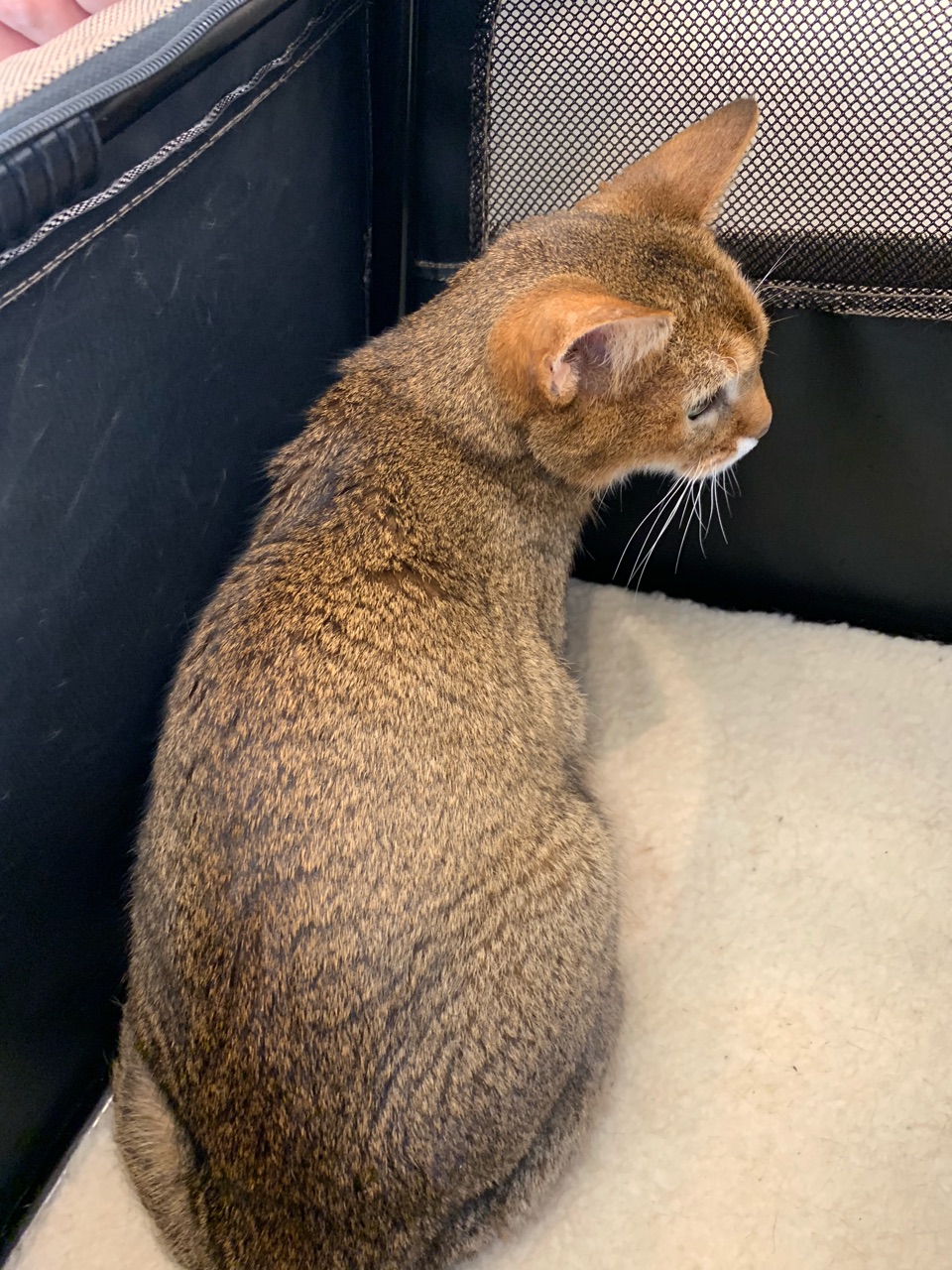 病院から戻ったちび子。
