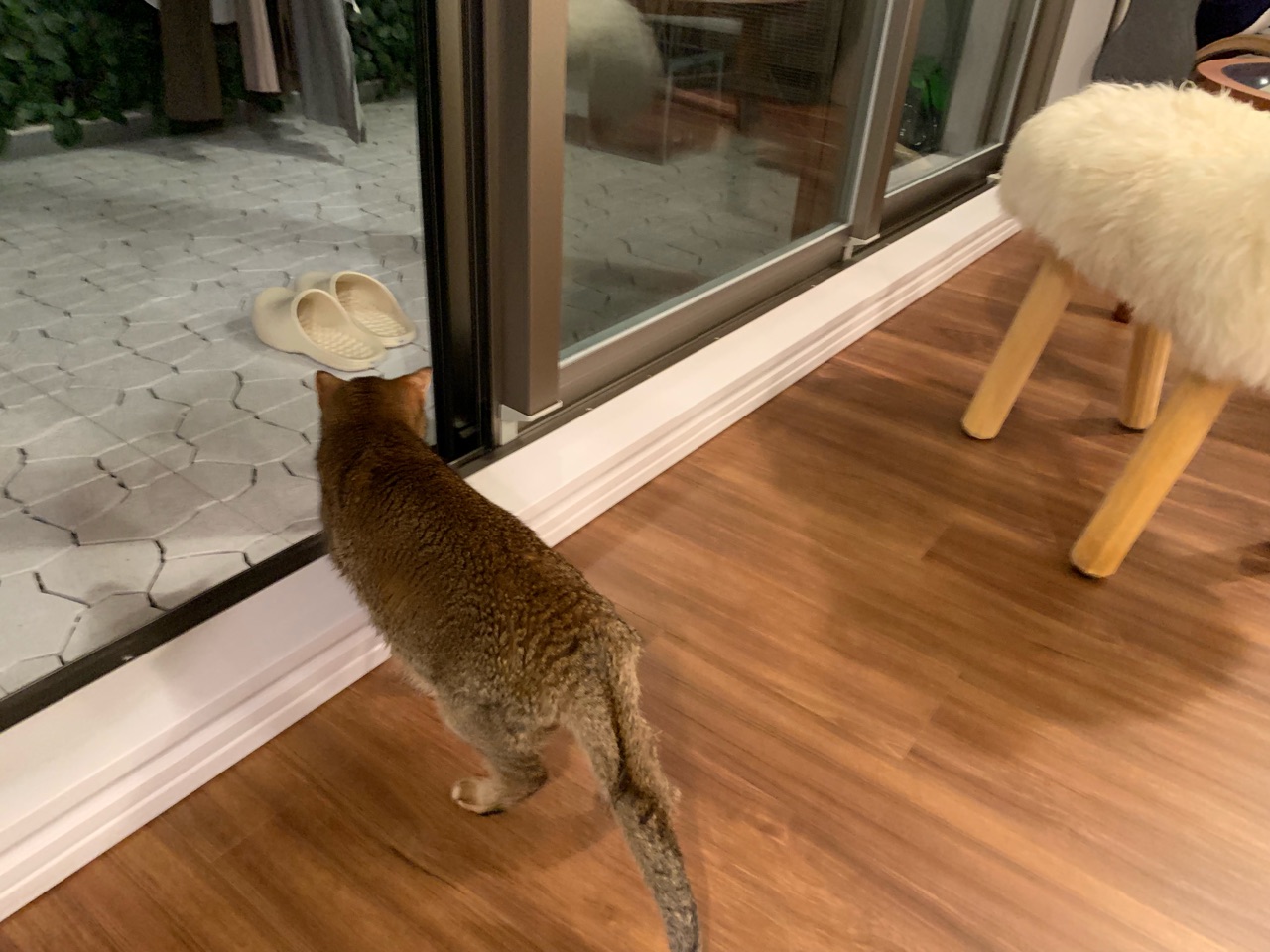 お昼頃はあまり元気がないように見えたちび子ですが、夜になるとベランダのお散歩に行くと張り切ってやってきました(*´ω`*)