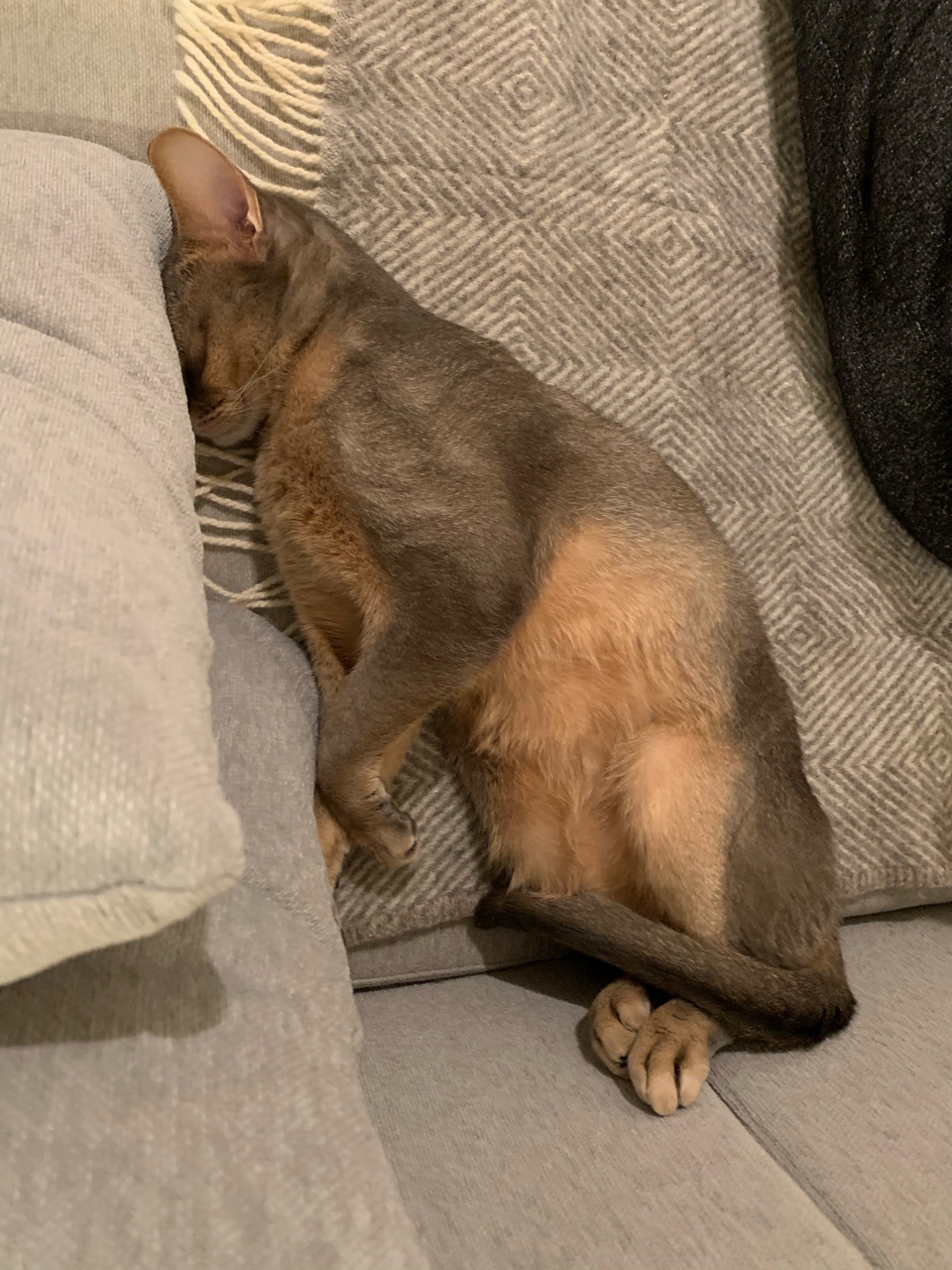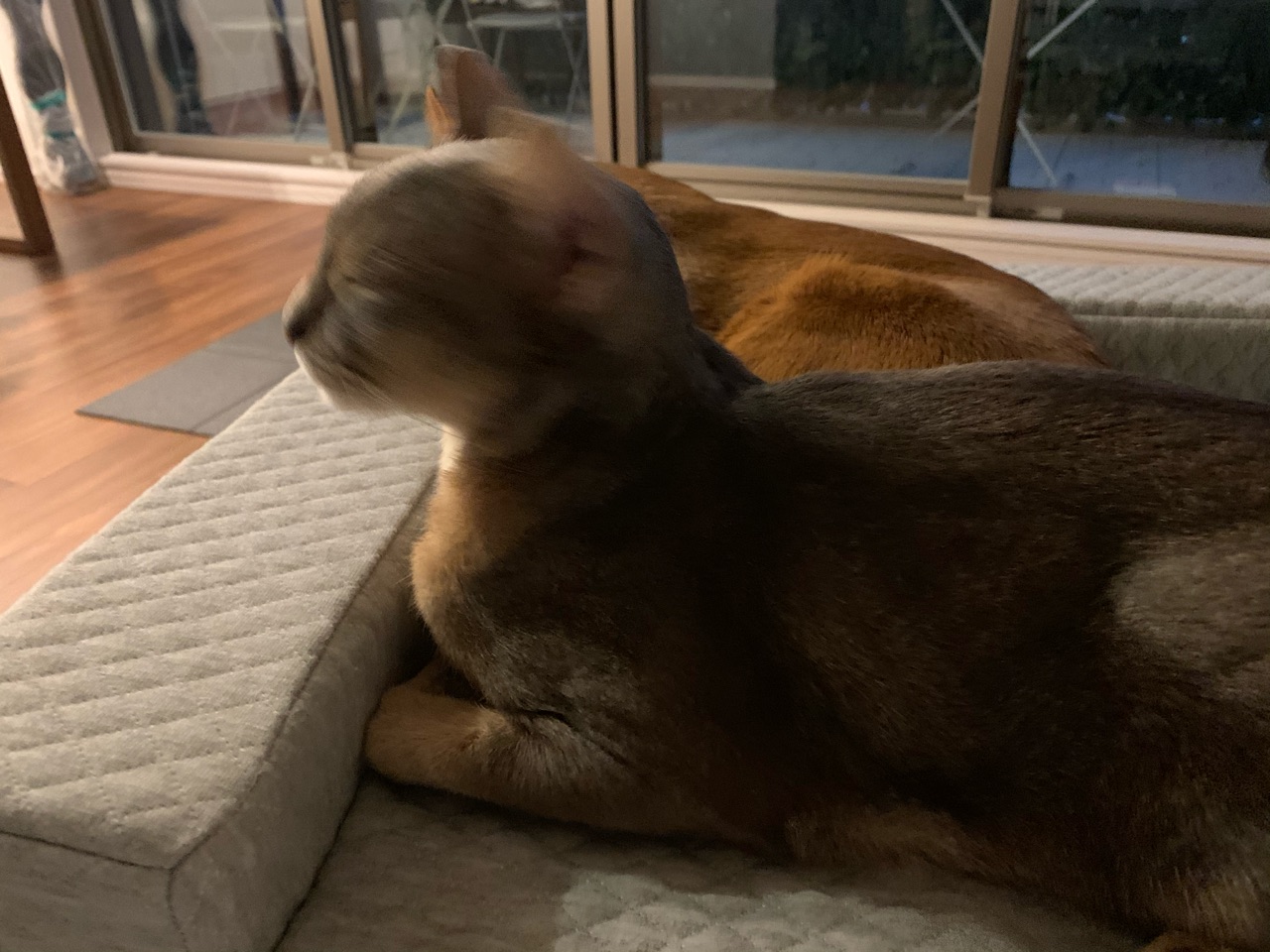 とのは、寝起きなどに、他の猫や人間にくっつきたがります。