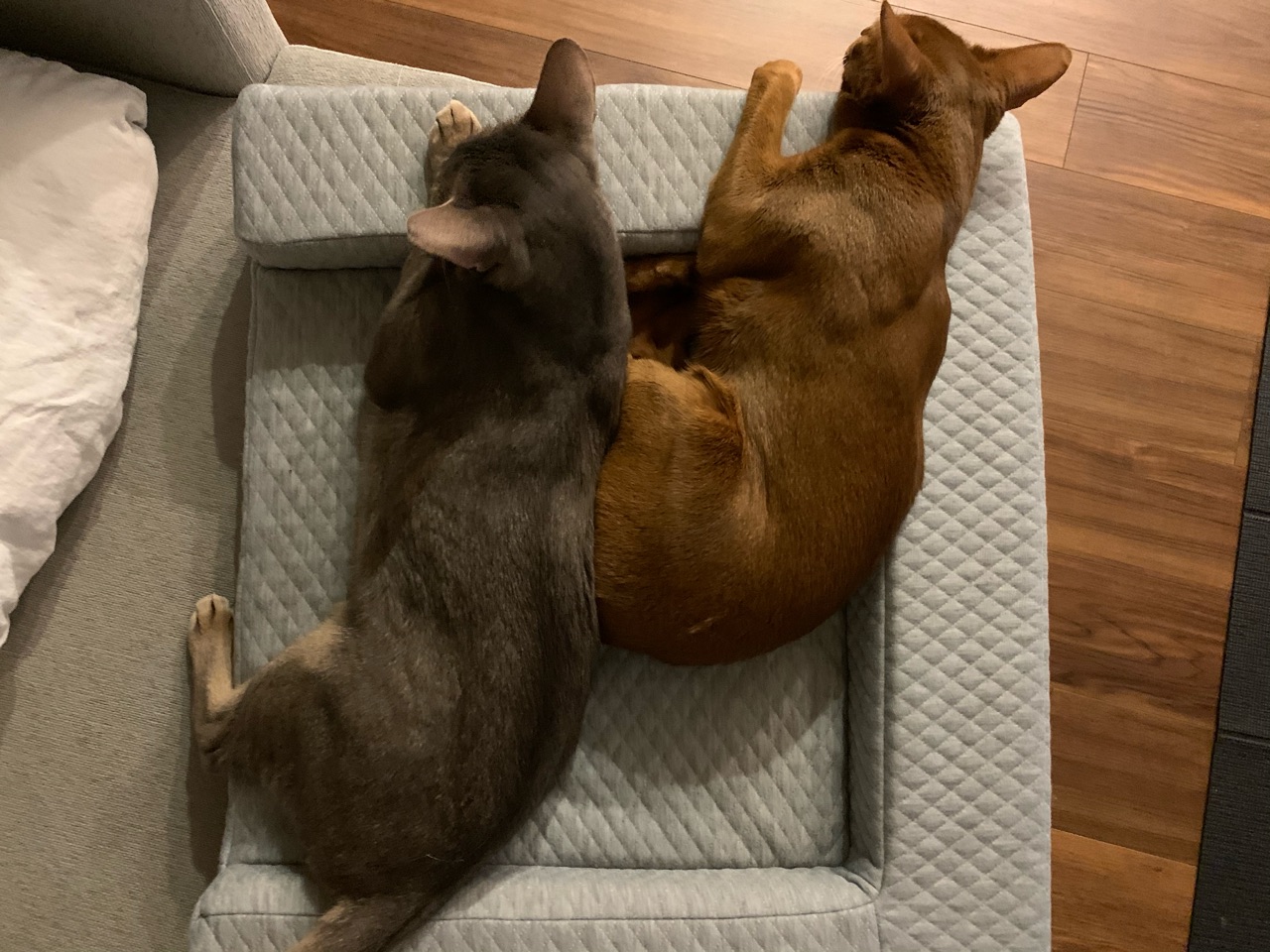 ひめちゃん、いつもなら弾き飛ばされるように出て行っちゃうのだけど、この日は眠気が勝ったのか、一緒のベッドでそのまま寝てた✨