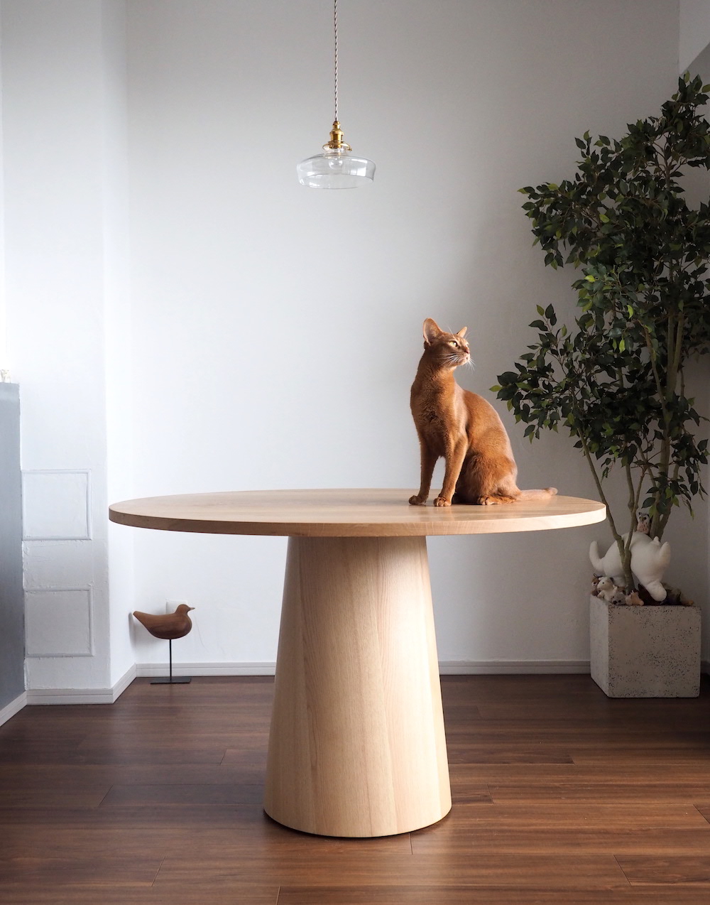脚が一本なのが何より素敵です。丸テーブルって脚が四本あると脚がいっぱい~な感じになりやすいですよね。