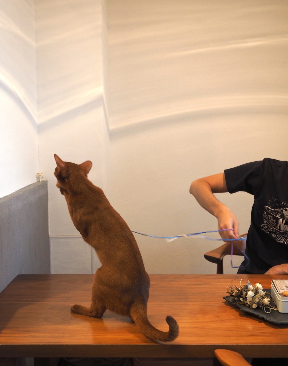 猫たちは、さっそくテーブルを我が物顔で闊歩してします。