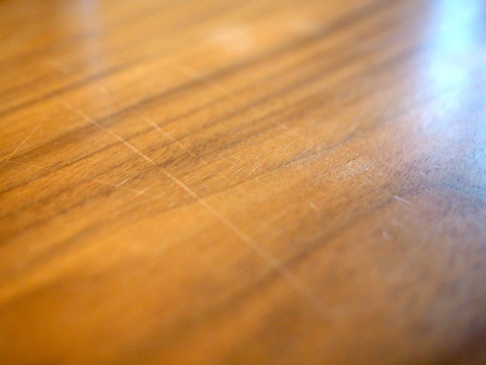 こうやって、テーブルの上で猫たちが暴れた形跡が、古いテーブルにはたくさん残っています。