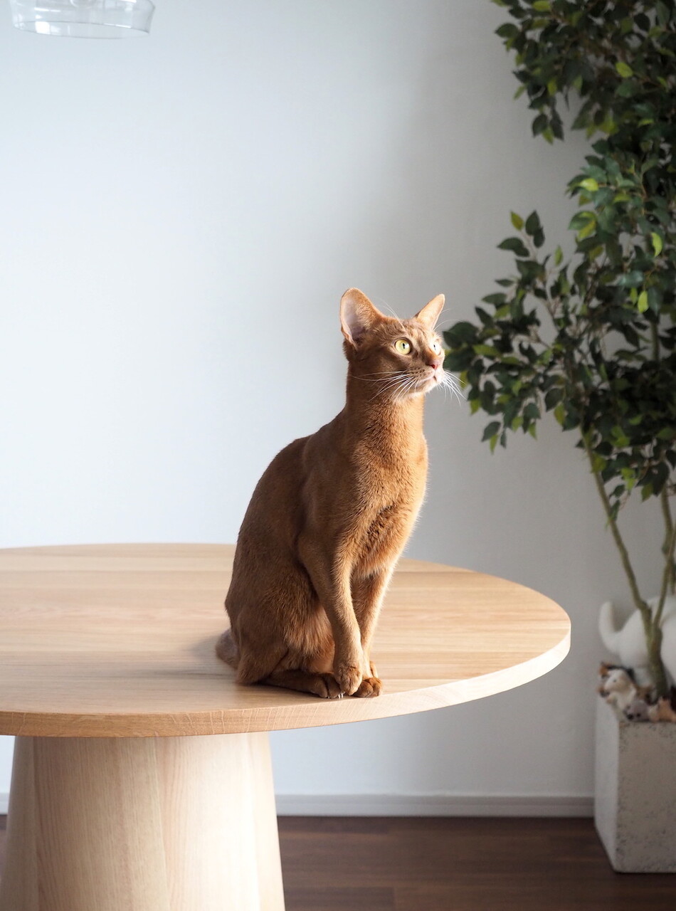 テーブルの周りを自由に歩けて、長方形のテーブルの時よりも、お掃除や移動がしやすいです♪