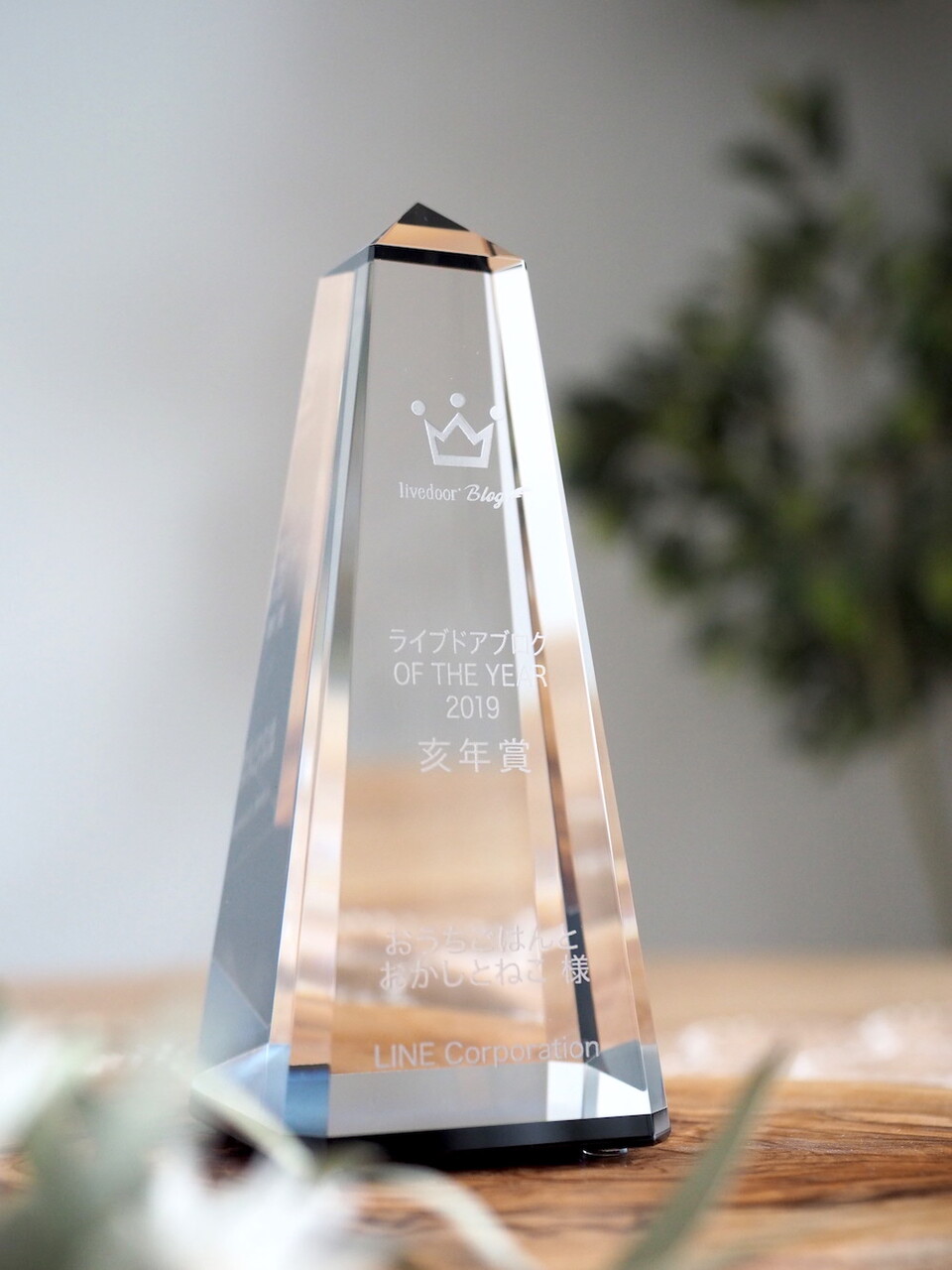ブログの名前入りのピカピカのトロフィーまでいただいて、とっても嬉しいです
