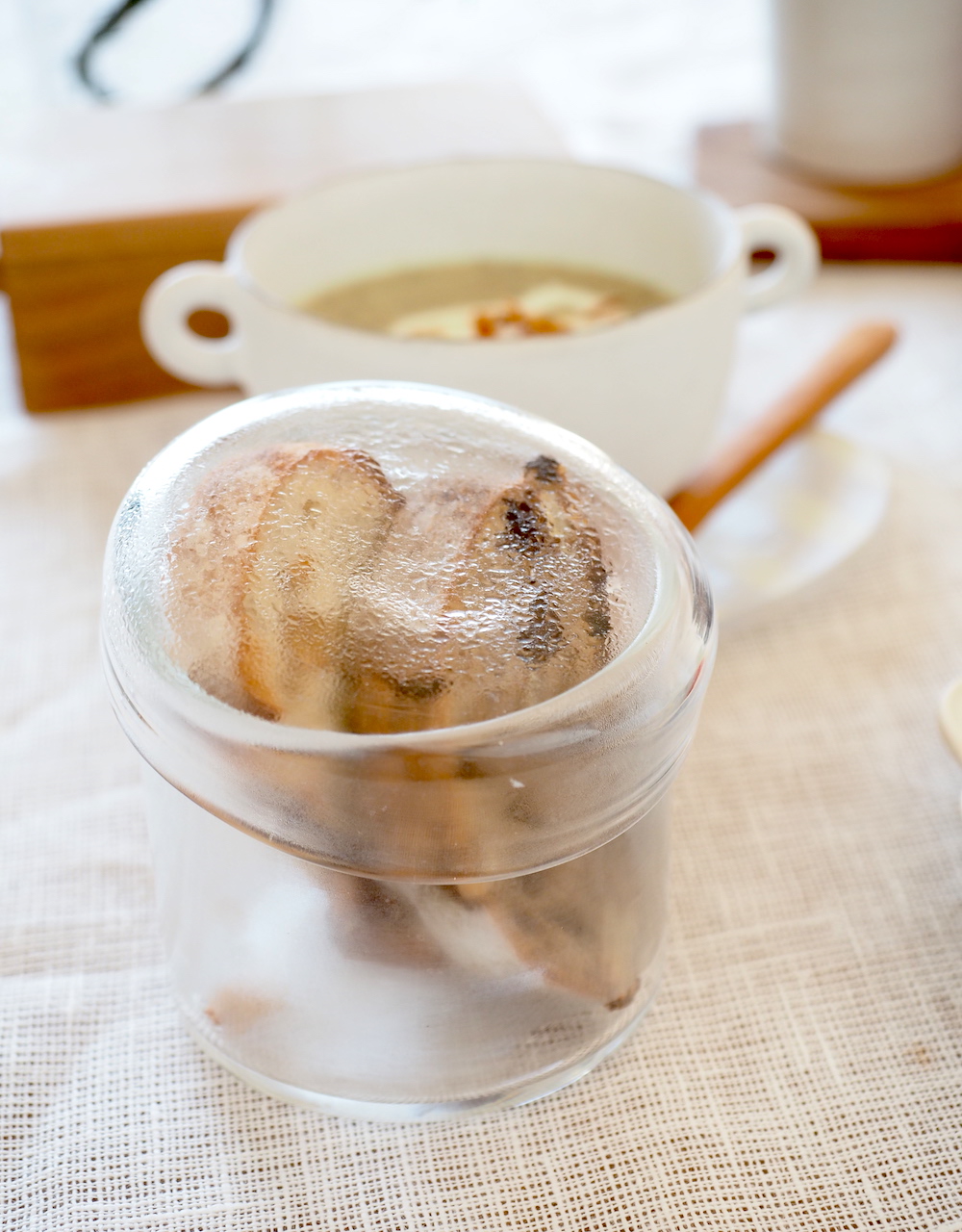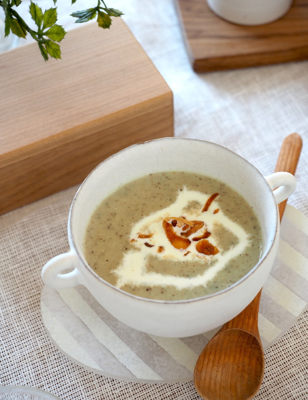 キノコのポタージュは、恵比寿にあったフィルトピエールさんへ行った時に、店主の方に口頭で教えていただいた作り方を真似してみました。
