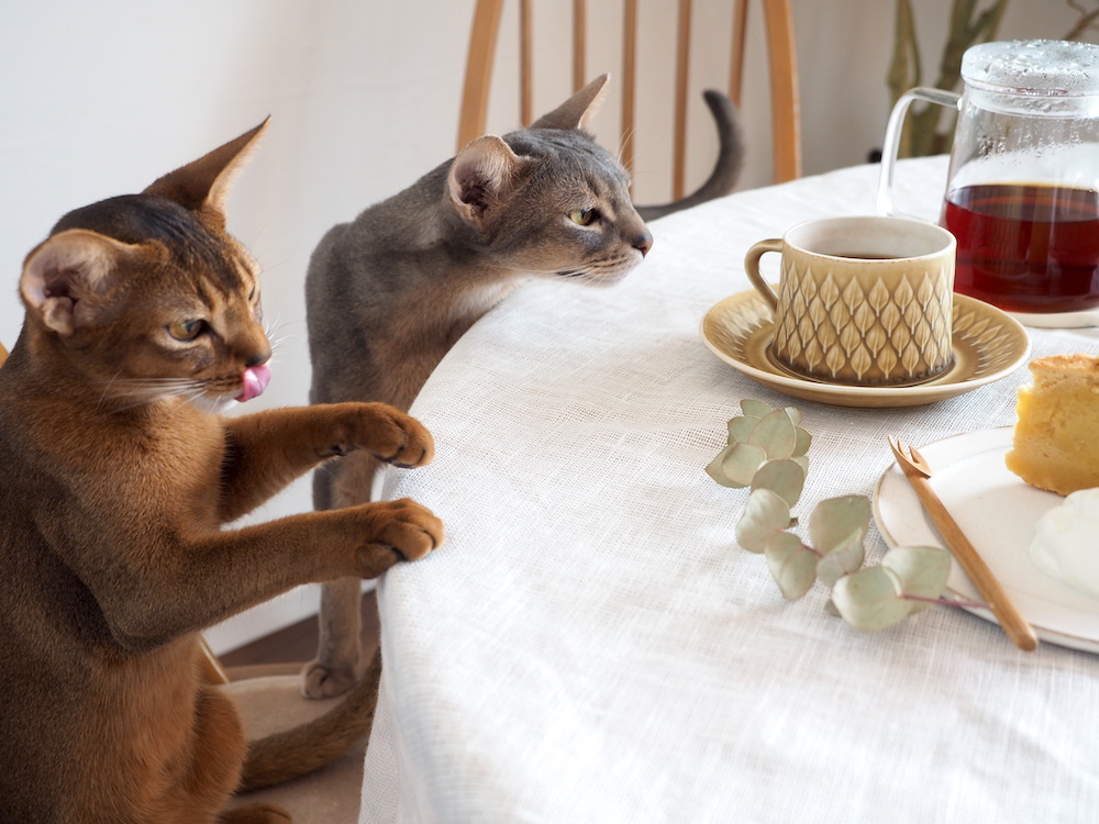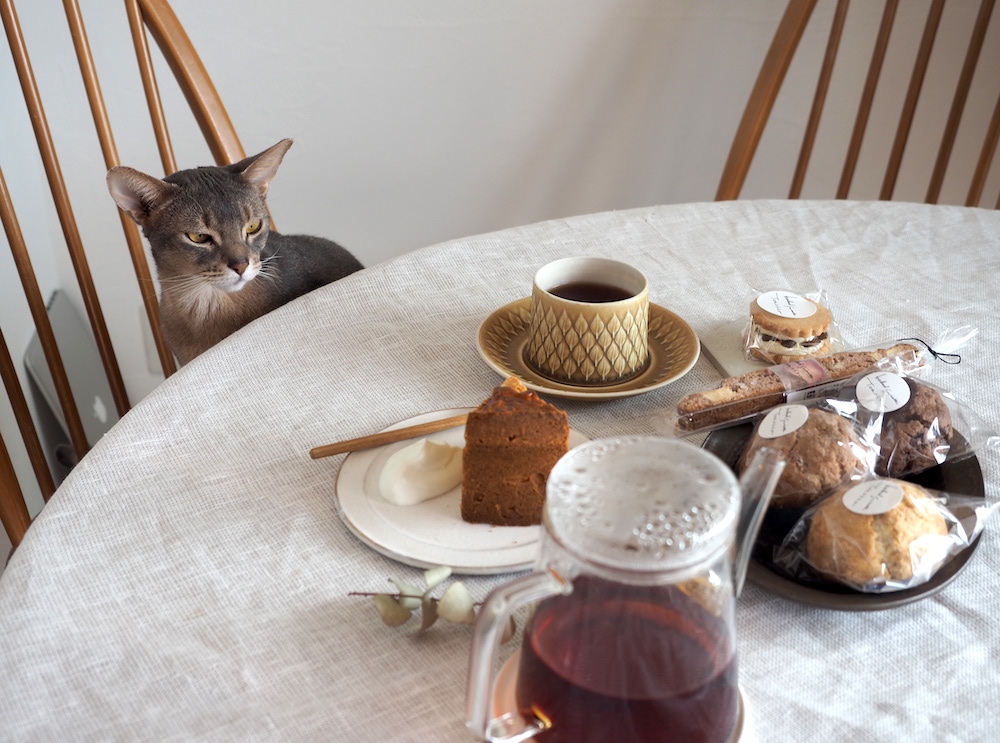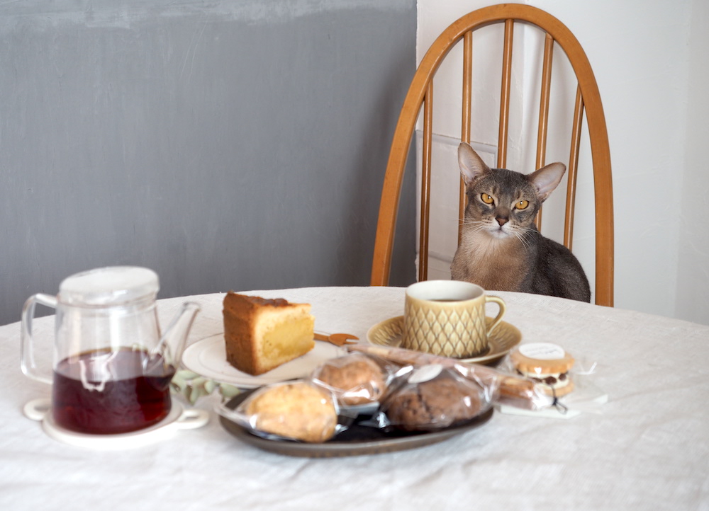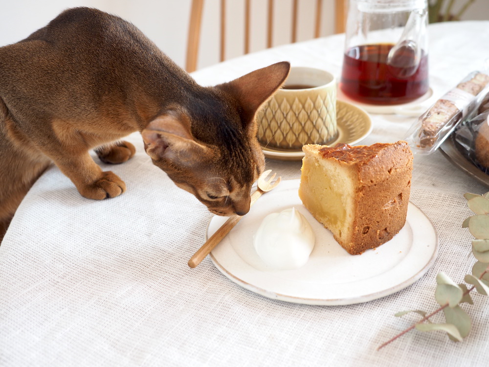 ガトーバスクを食べる気満々で用意したら、おこぼれもらう気満々でやってきたぼくちん。