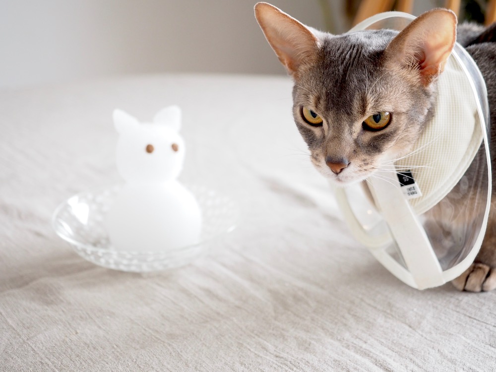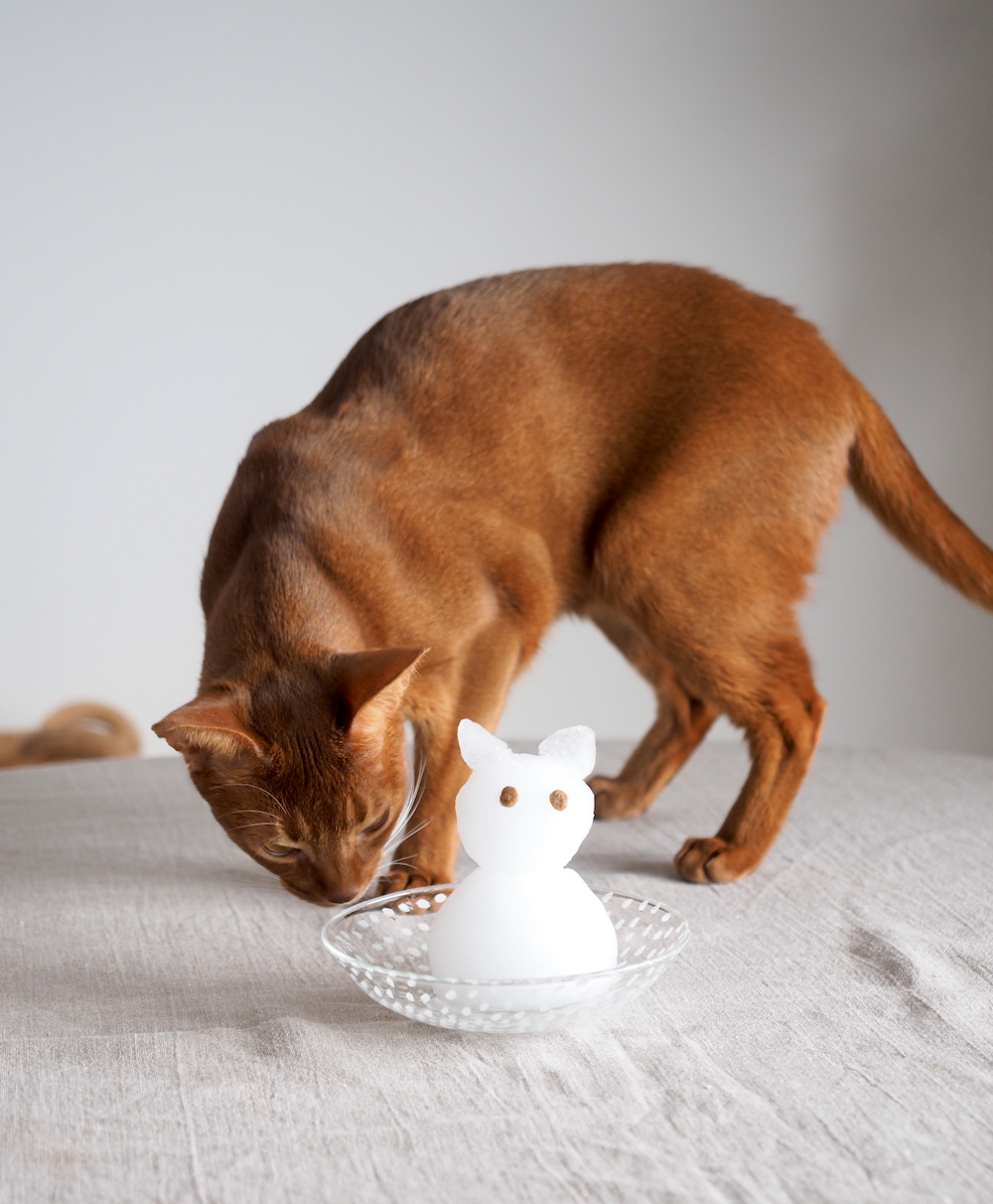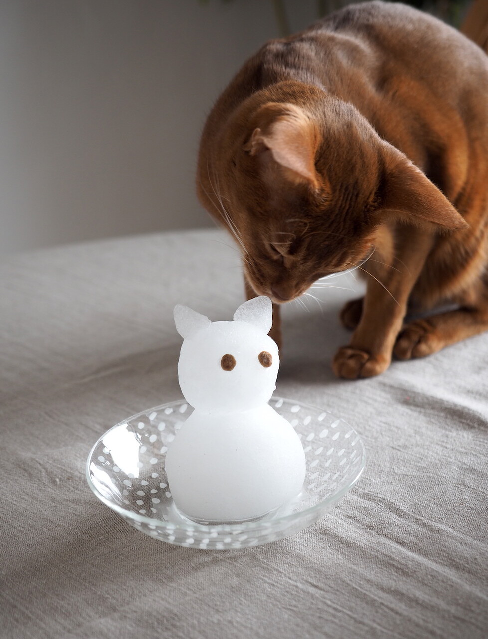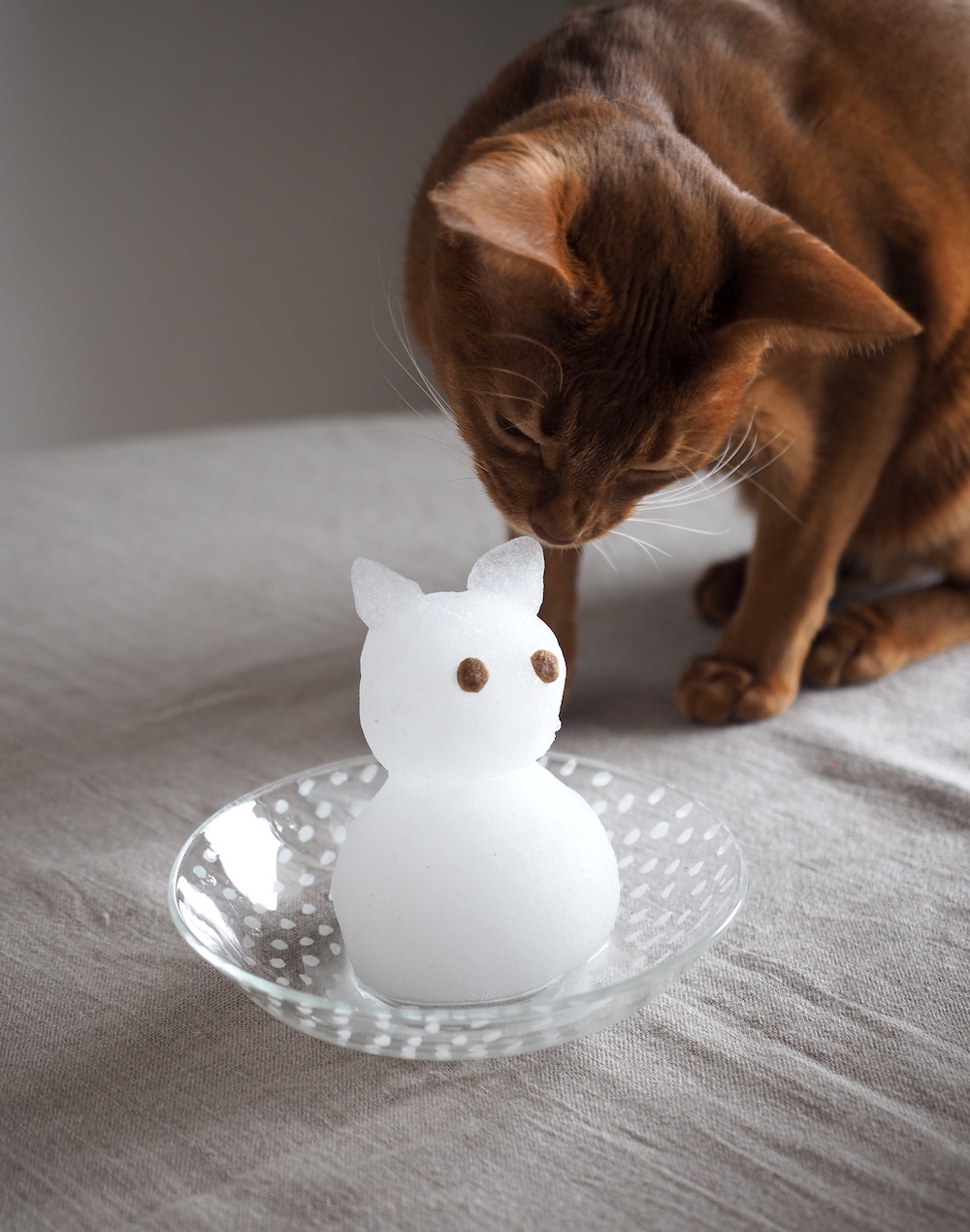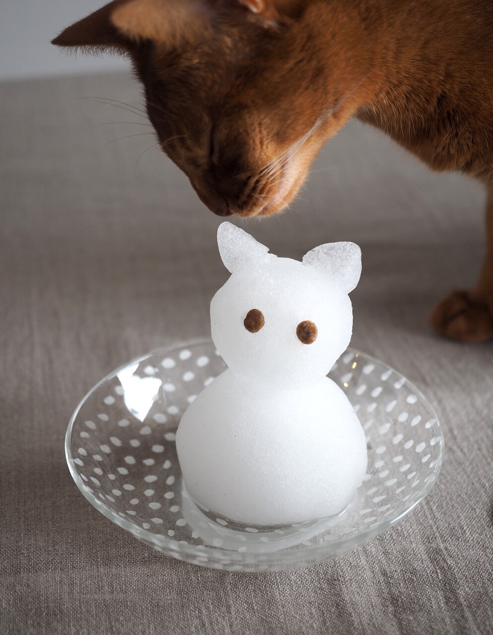 その雪で、雪だるまを作って猫たちに見せてみました。
