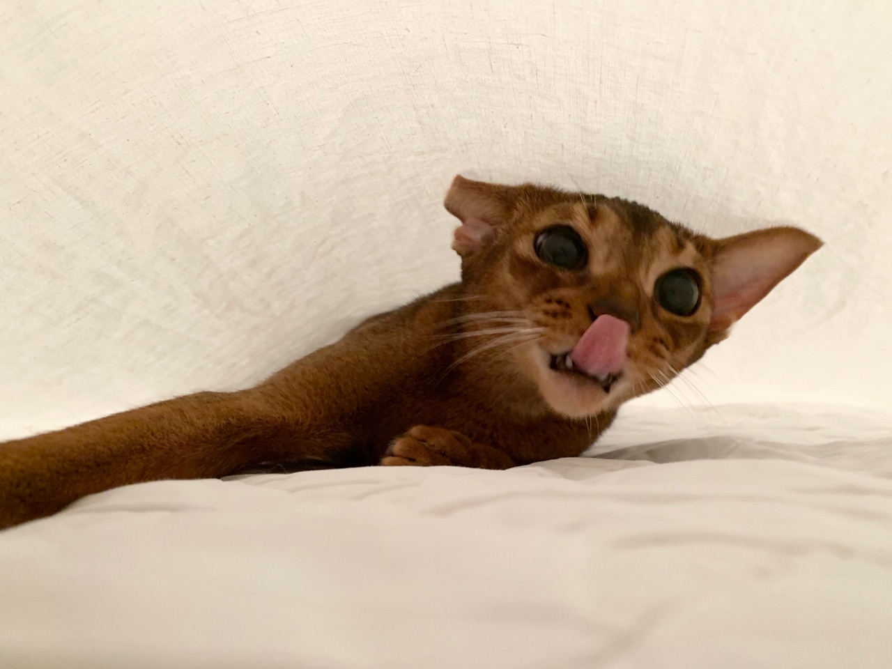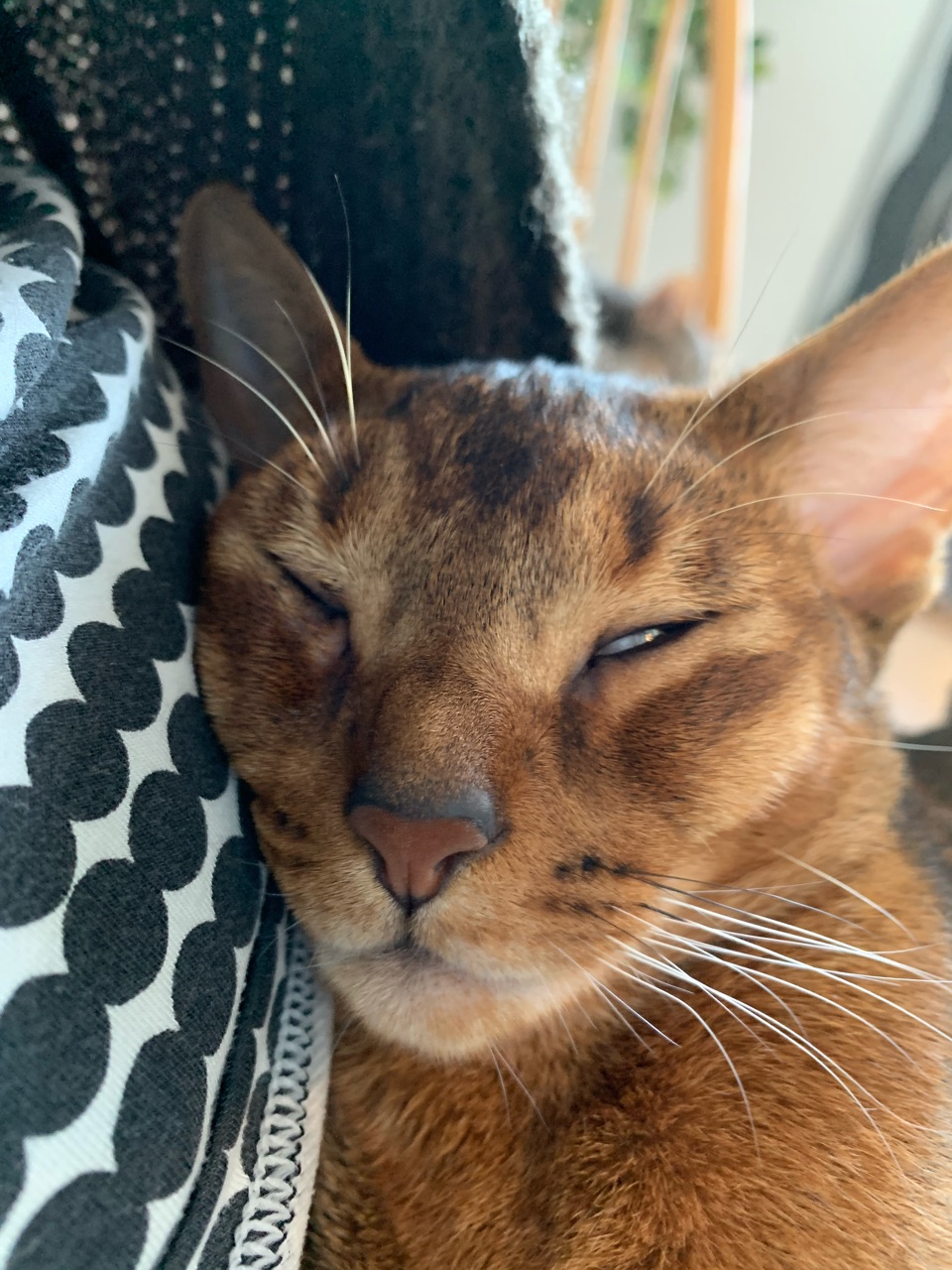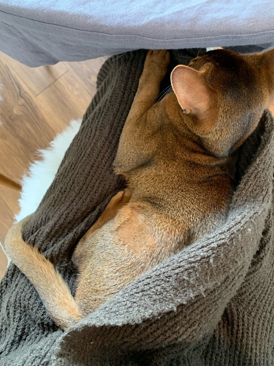 眠くなると、膝にダイブして乗ってきてそこでコロンと寝ちゃうこともしばしば。