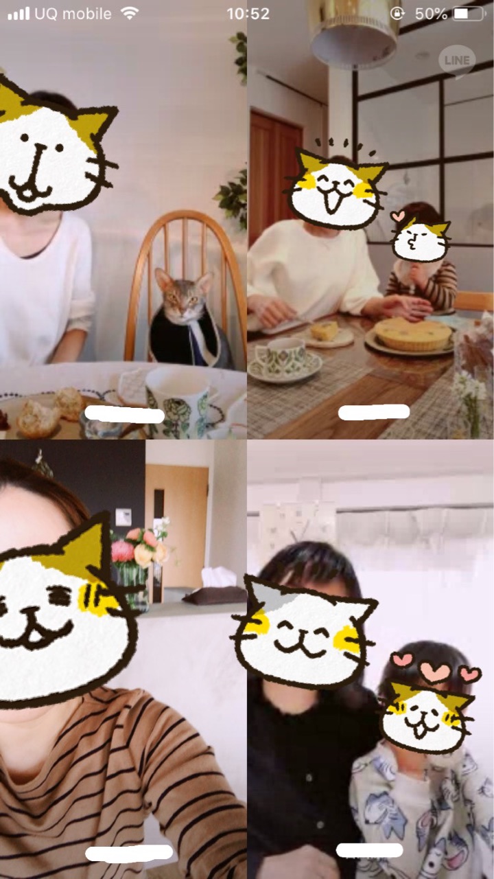 LINEのビデオ通話では、4人まで同時に画面に表示できるそうですよ。