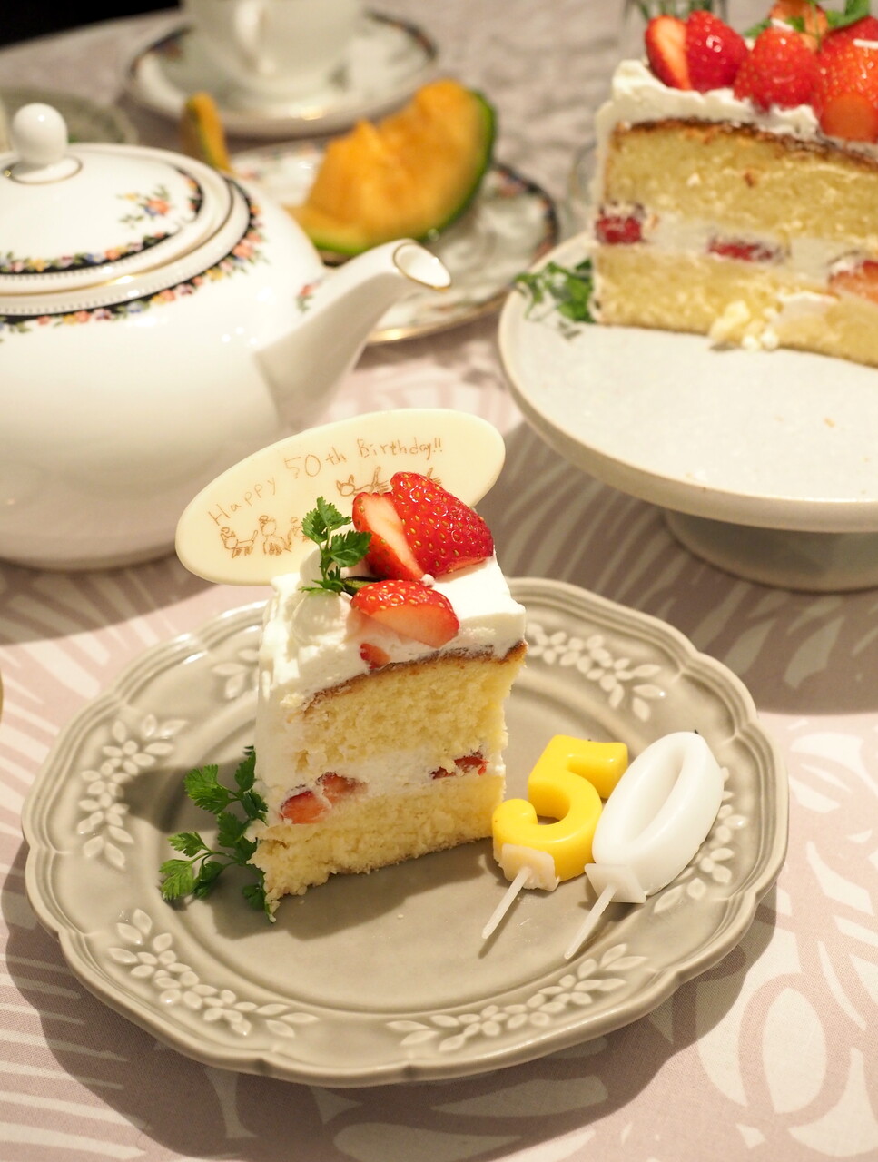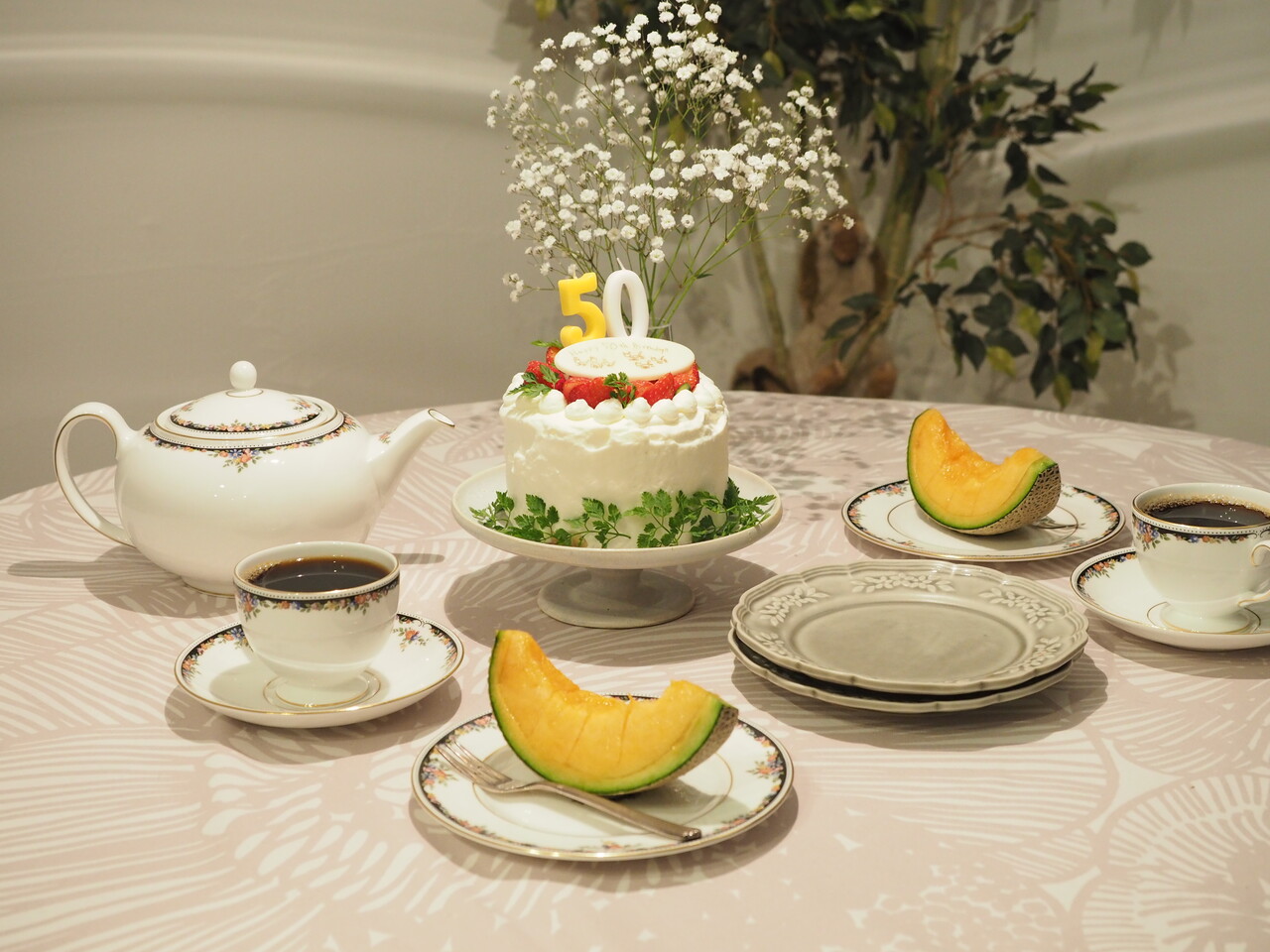 食後は、お待ちかねのお誕生日ケーキとデザートのメロンをいただきました♪
