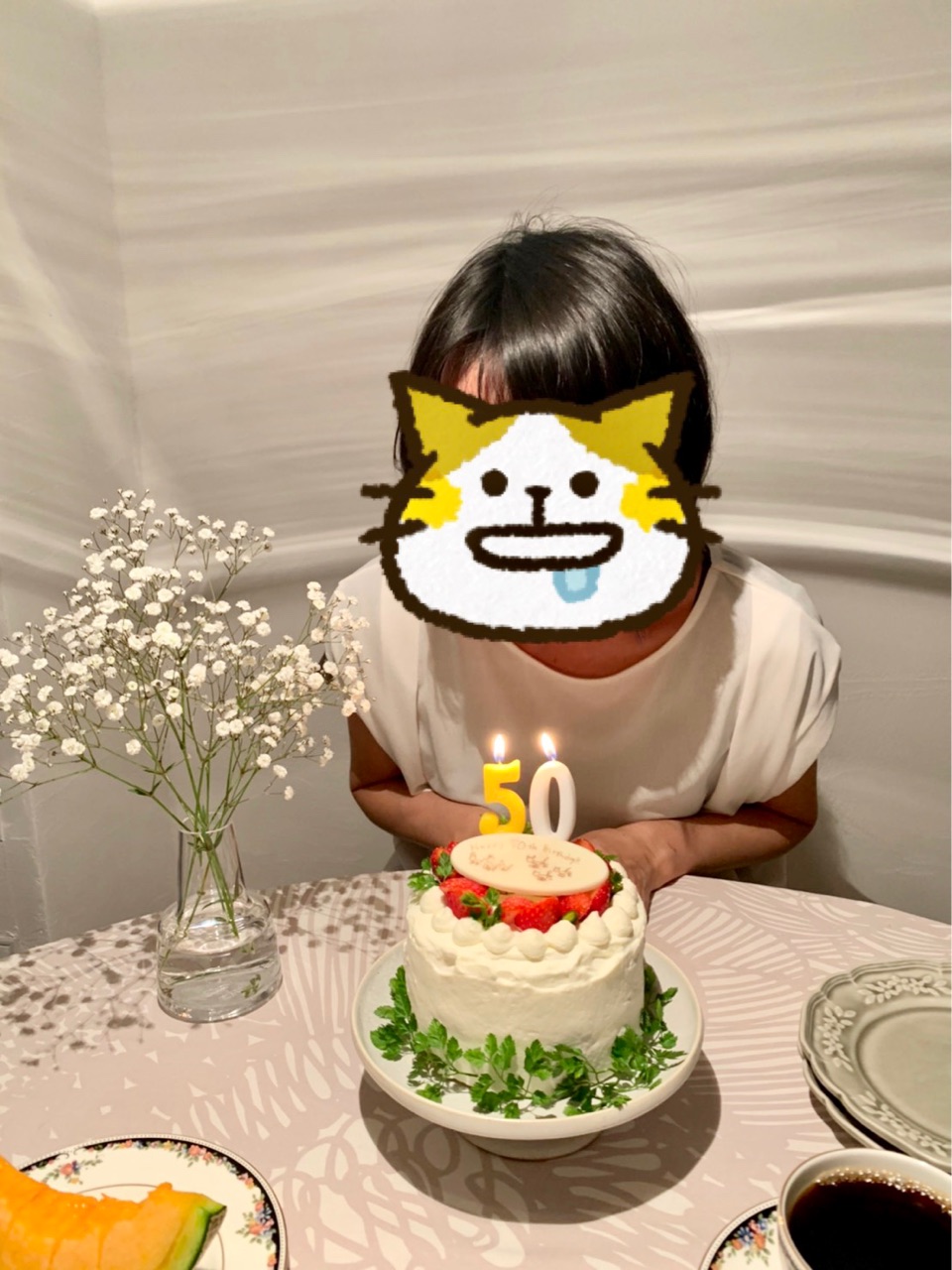 ハッピーバースデーの歌の後に、50を吹き消すじょり。