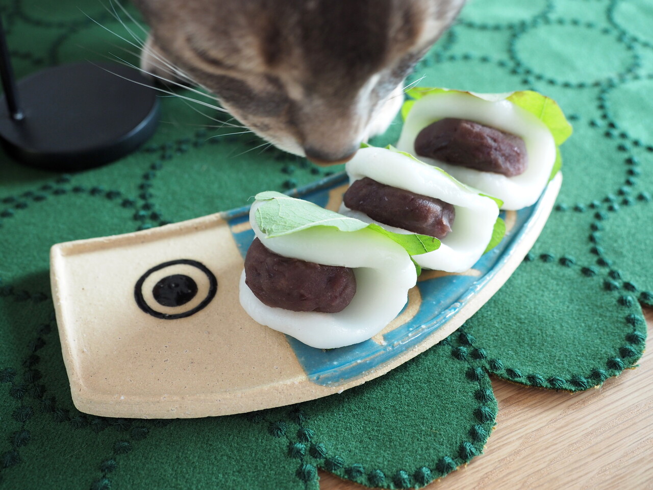猫は柏餅は食べられないので、飼い主が美味しくいただきました