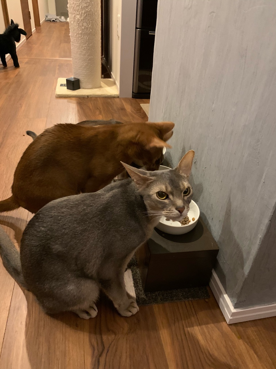 最初はこの中央のお皿の自分のカリカリを食べていたのに、