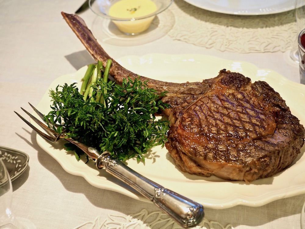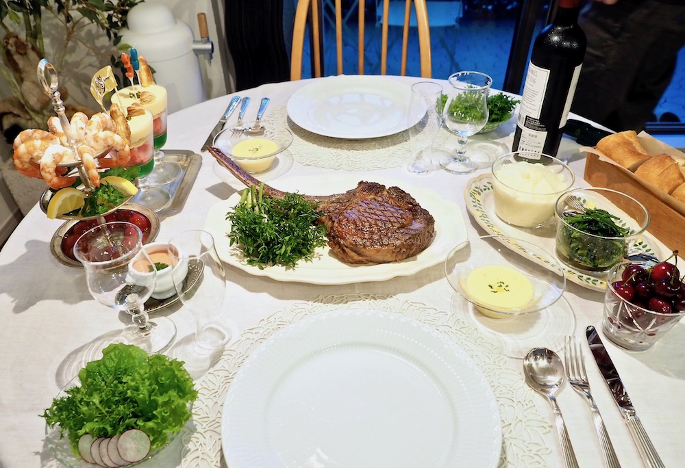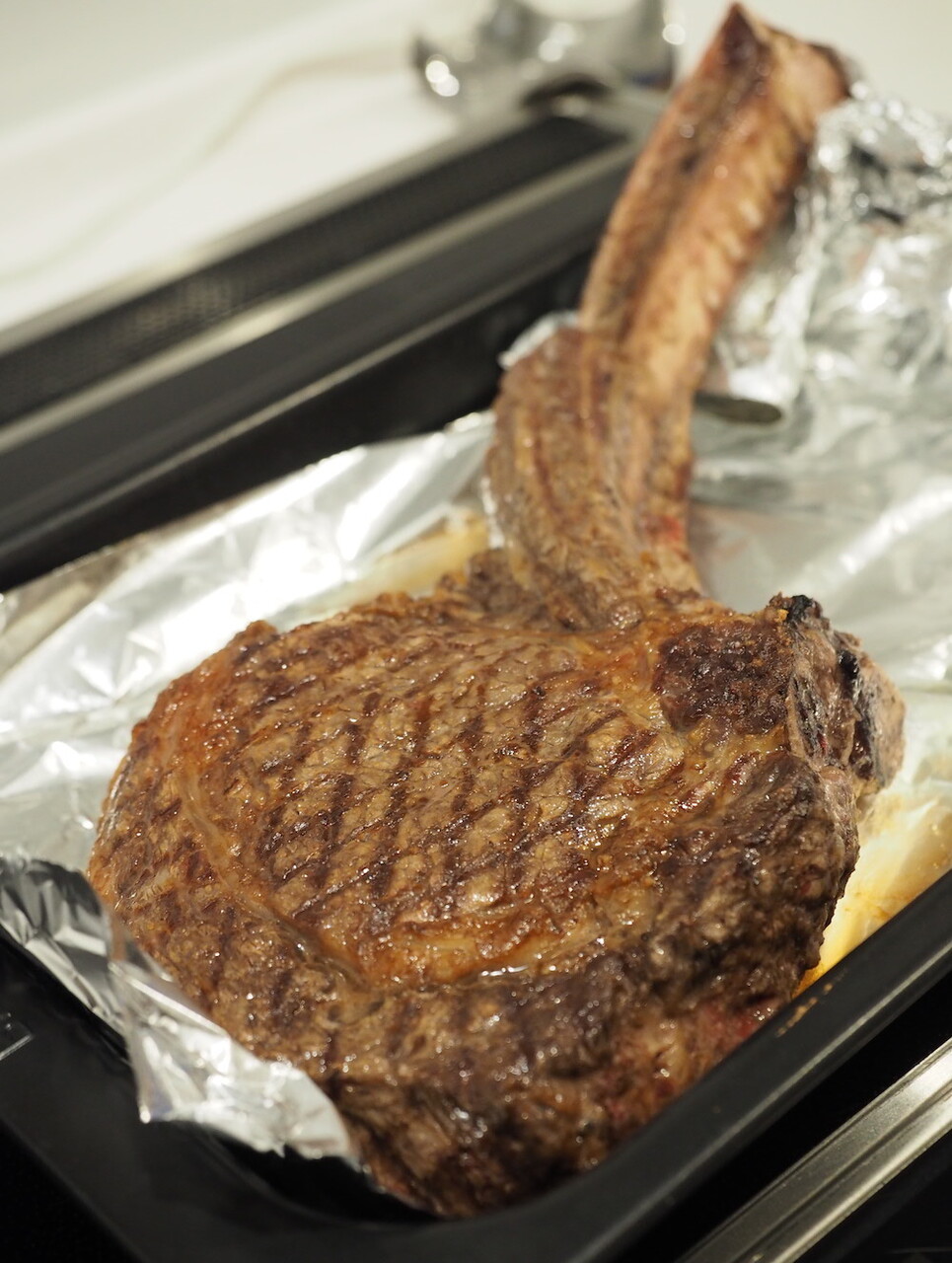 トマホークは、我が家で一番でっかいオーバルのお皿(38cm)にちょうど収まりました。