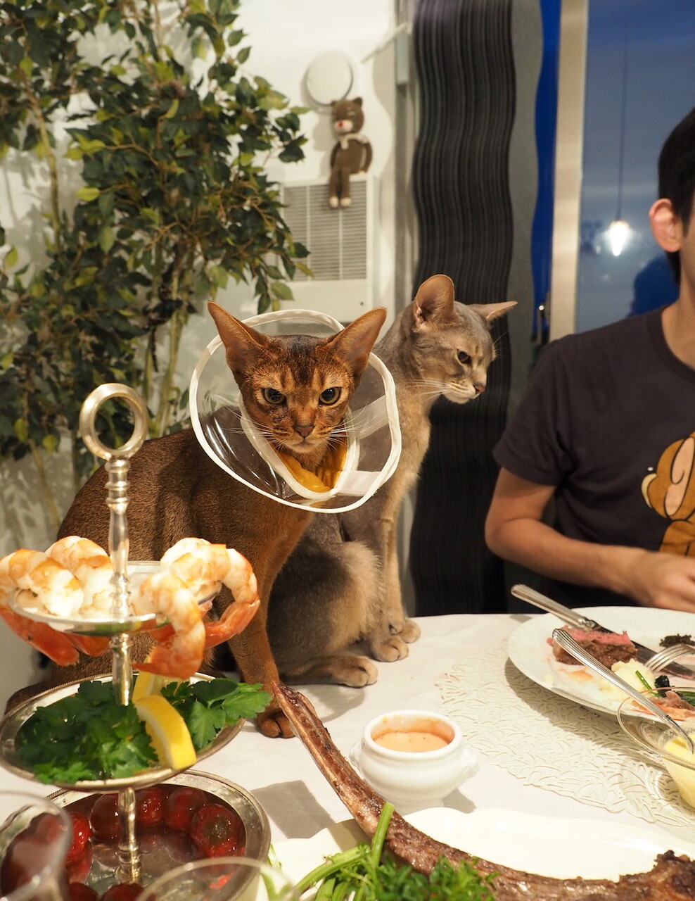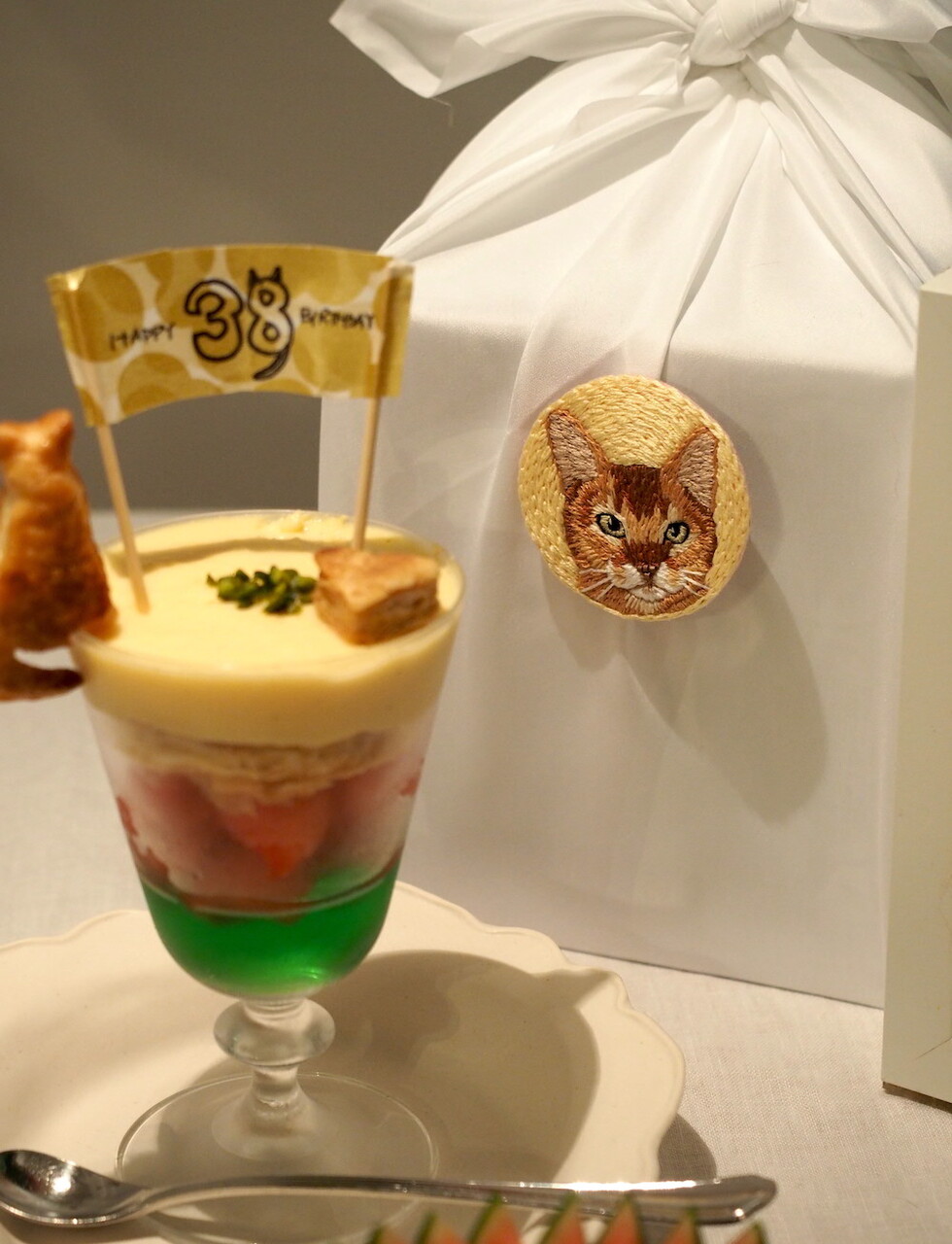 グラスデザートに飾っていた猫ちゃんのパイが食べられなくて、残してしまった夫婦です(⑉་ ⍸ ་⑉)