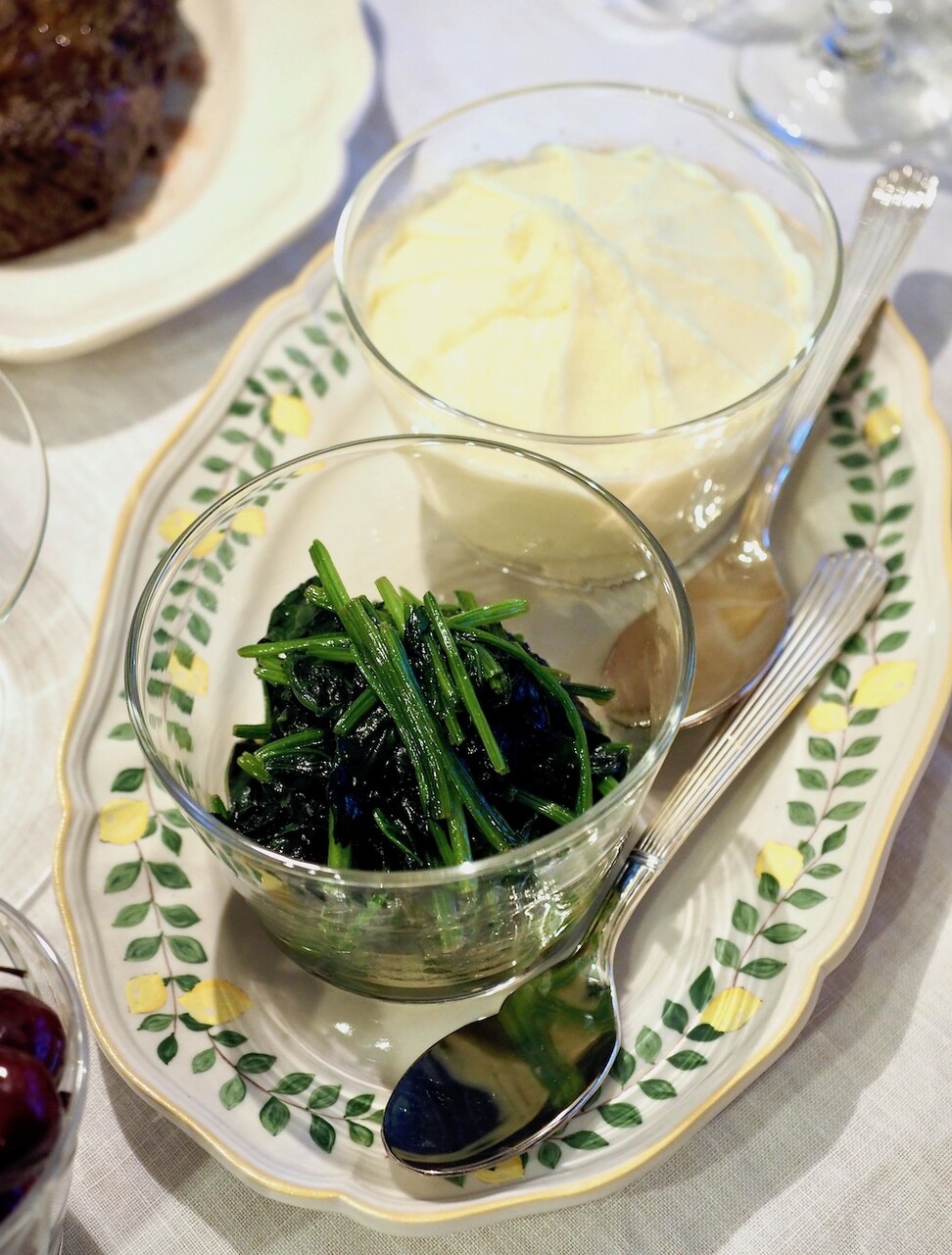 あとは、ウルフギャングといえば、「マッシュポテト」と「クリームスピナッチ」と言うことで、こちらも用意♪