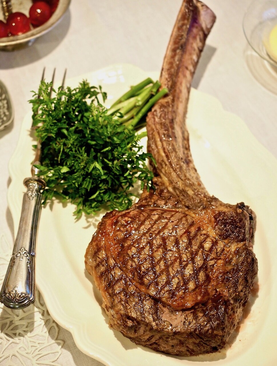 骨の部分が長く取られているのが「トマホークステーキ」で、短く切られていると「カウボーイステーキ」になるそうです。
