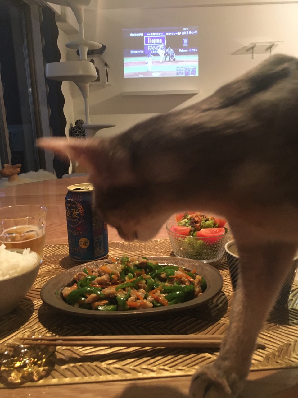 今夜は青椒肉絲だそう。