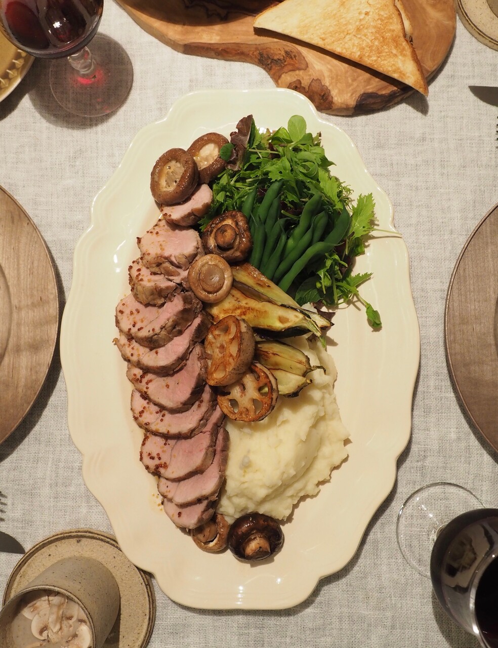 グリル野菜は茄子、蓮根、しいたけ、マッシュルームです。