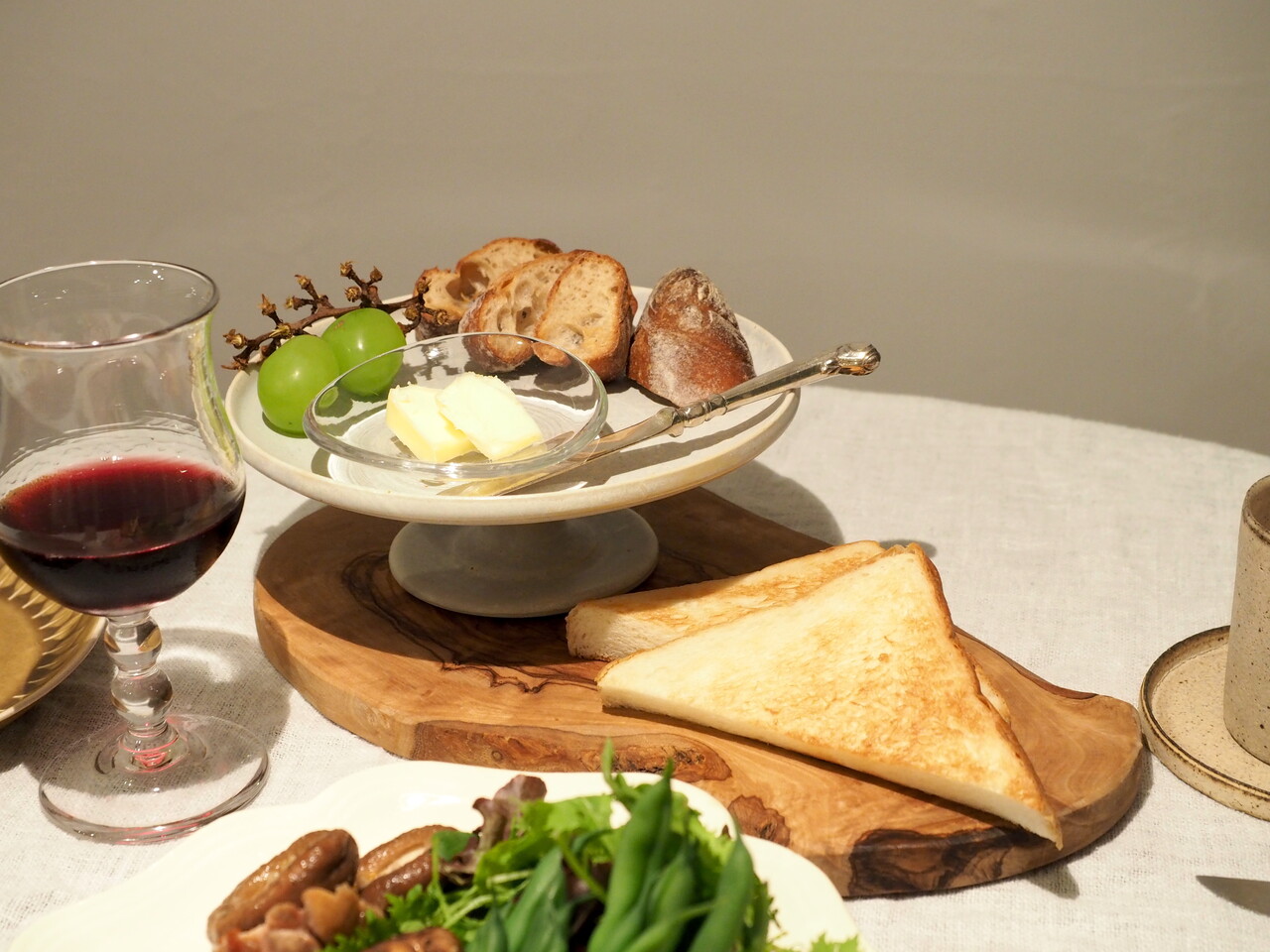 パンは、前前日の残りのバゲットと、乃が美の食パン。